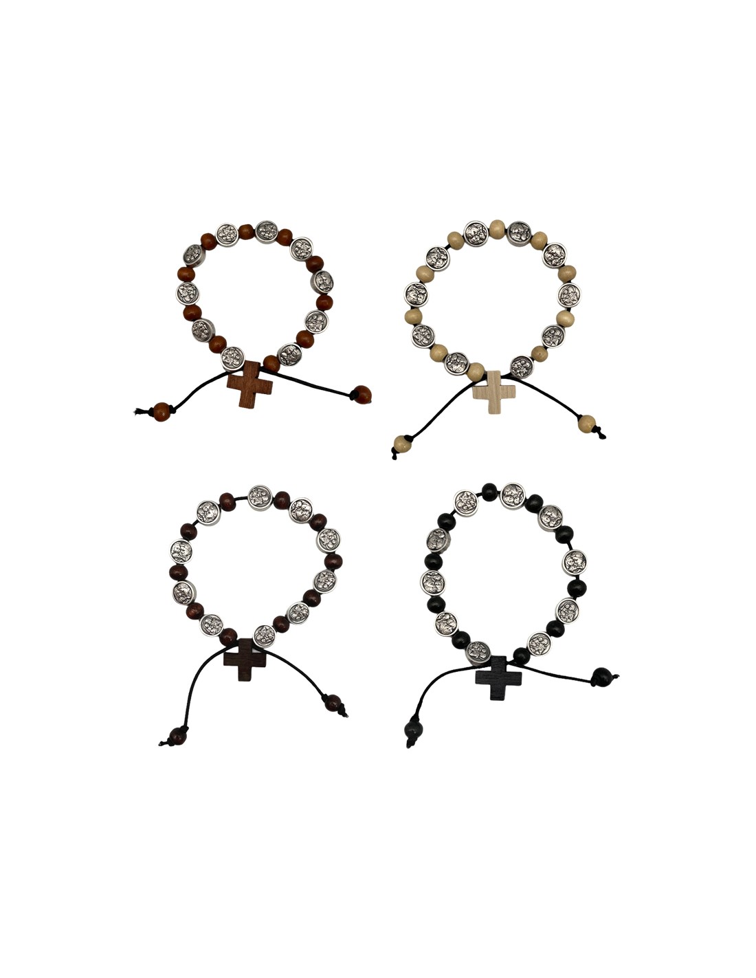 Brazalete San Jose Y Sagrada Familia Madera 6Mm Elastico Colores Surtidos