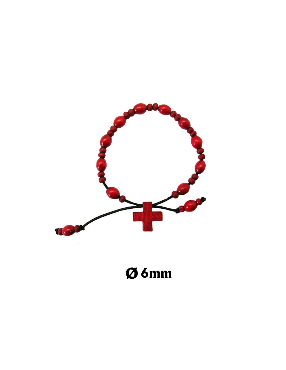 Pulsera Madera Roja Elastica Bola Ovalada 6Mm Con Cruz