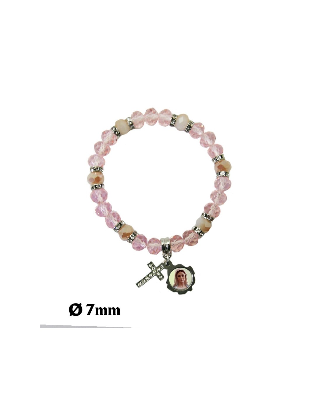 Pulsera Elastica Strass Rosa Y Blanca Cuentas Hexagonales Con Cruz