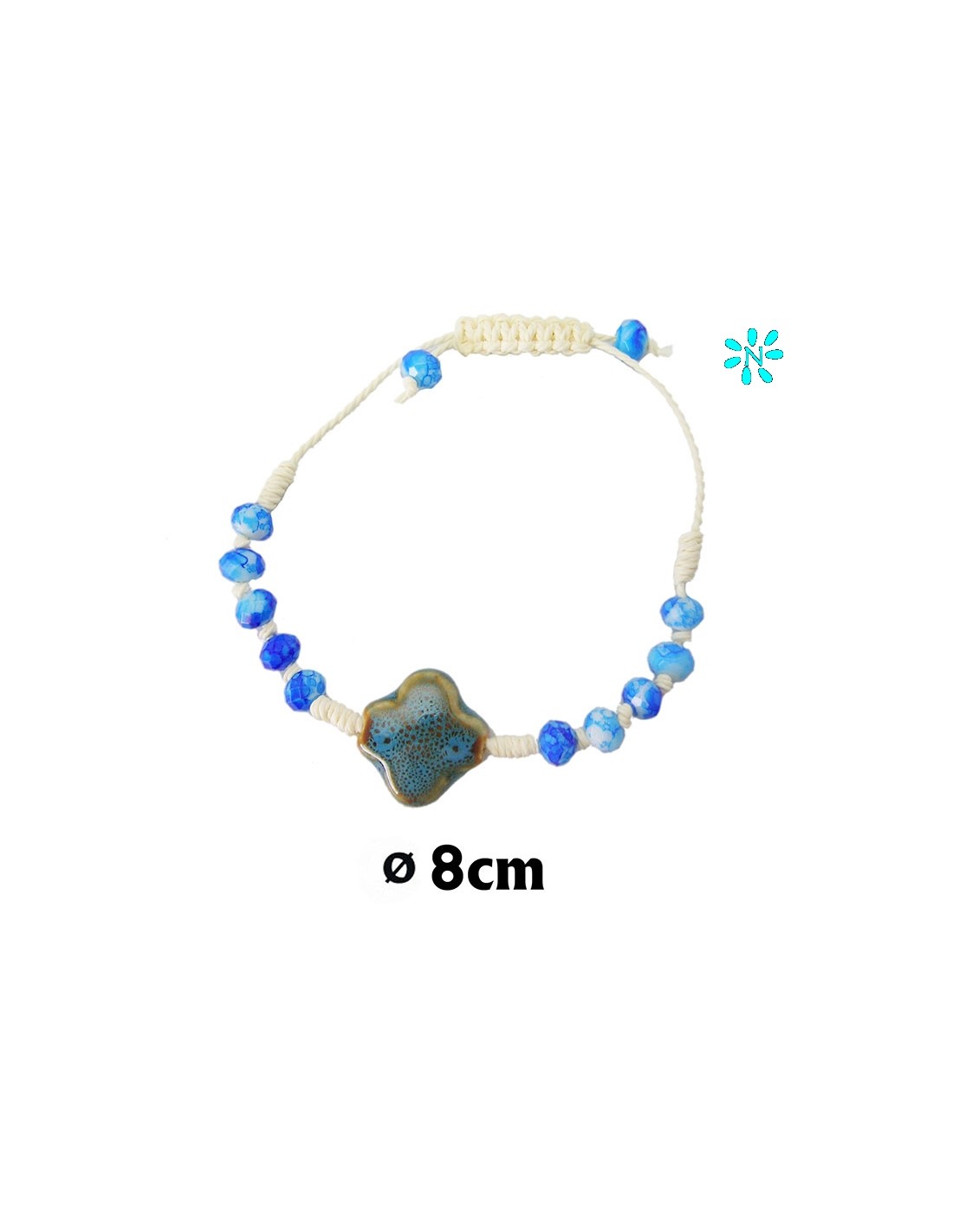 Pulsera Cuerda Con Bolas De Cristal Y Cruz Ceramica Azul