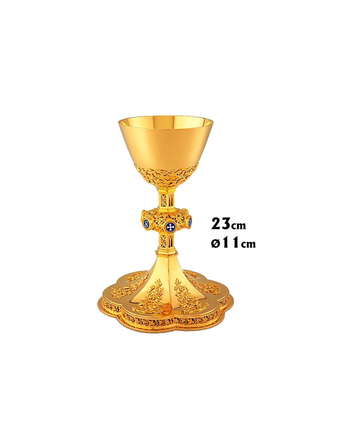 Caliz Plata Dorada Neogotico Y Patena Diseño Floral Base Filigrana Nudo Esmaltes Azules 23Cm X 11Cm