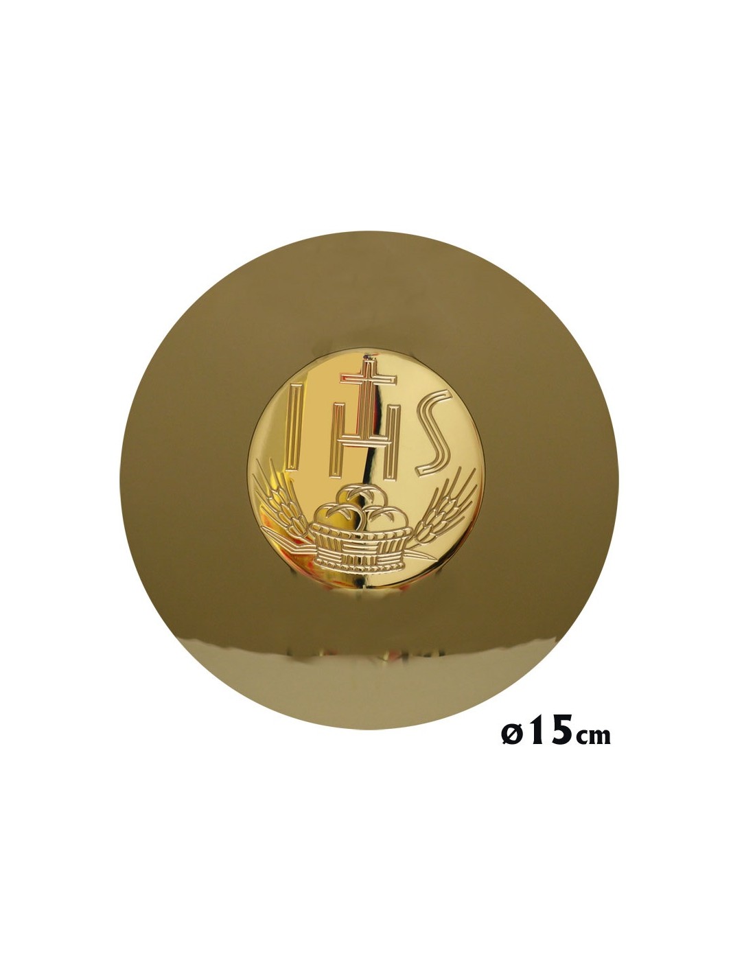 Patena Para Caliz Grabada Ihs Con Cesta Panes Y Espigas 15Cm
