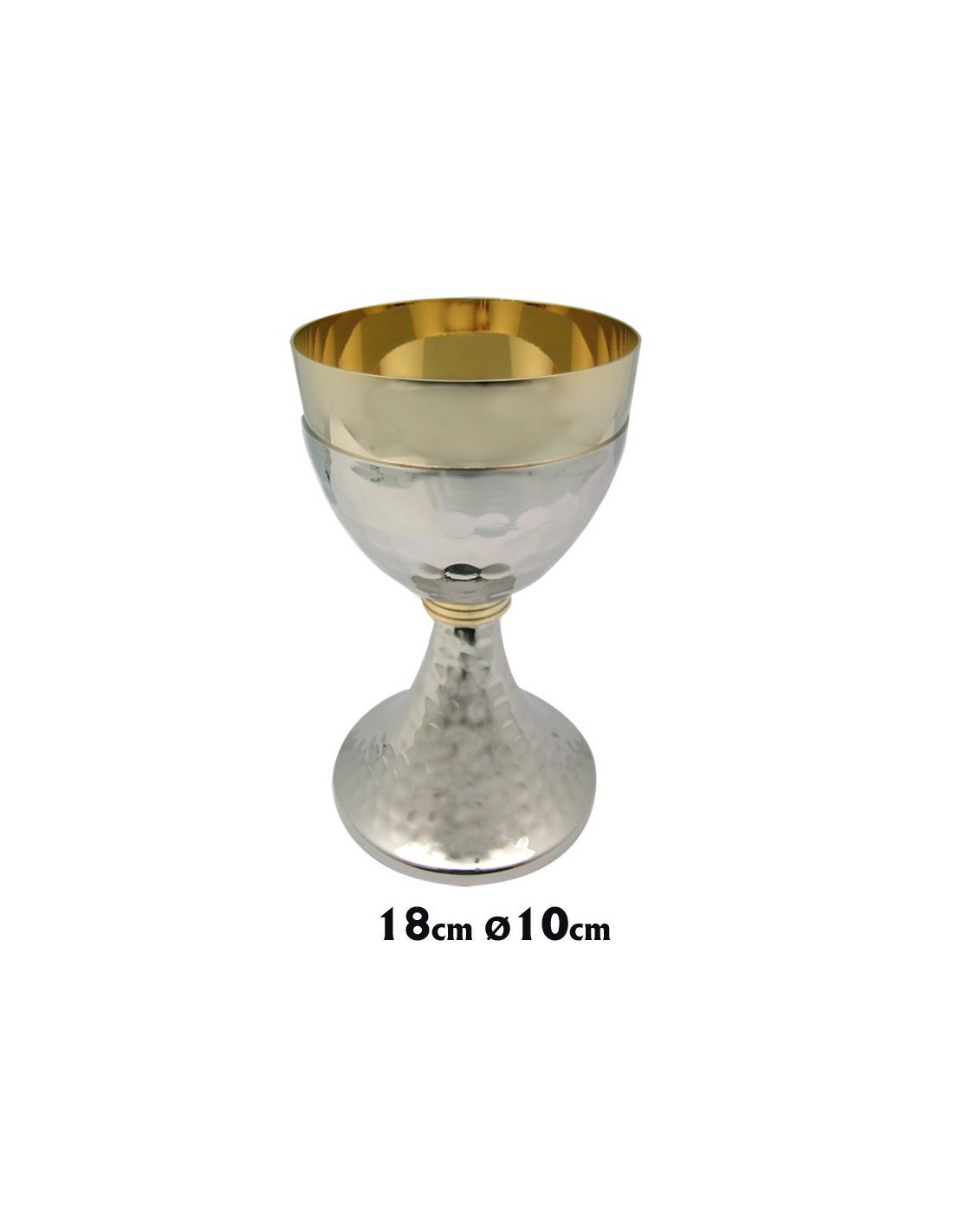 Caliz Metal Niquel Martilleado 18X10cm Parte Superior Copa Y Anillo Central Dorado