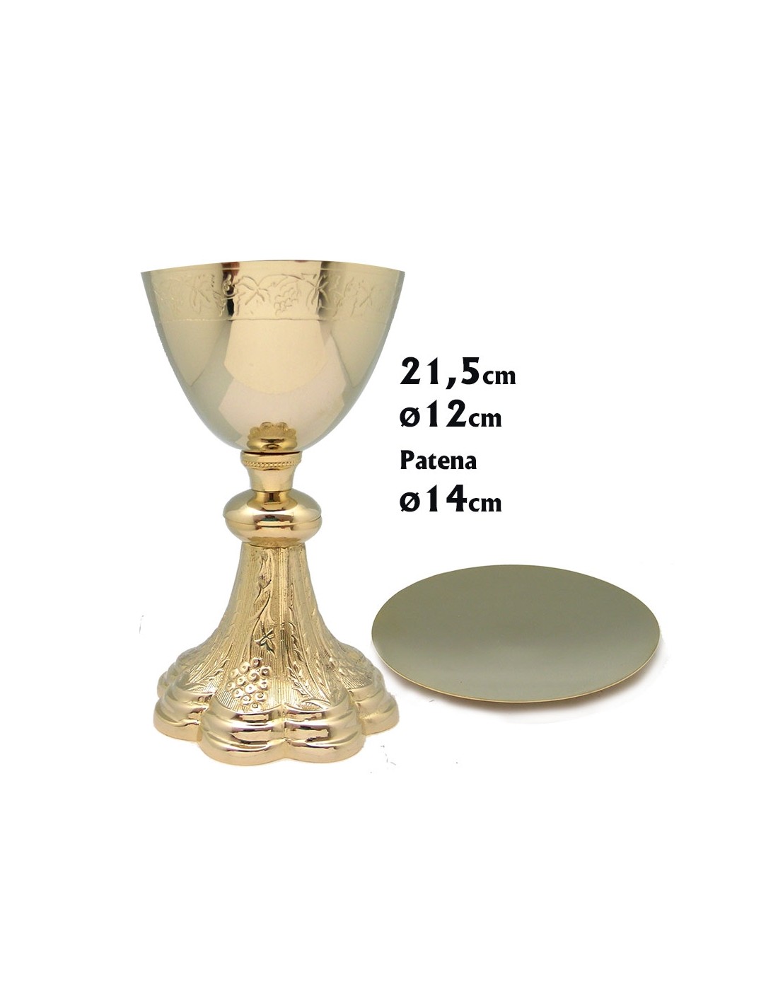 Caliz Metal Dorado Copa Con Greca Y Base Escalonada Con Espigas Altura 21. 5Cm