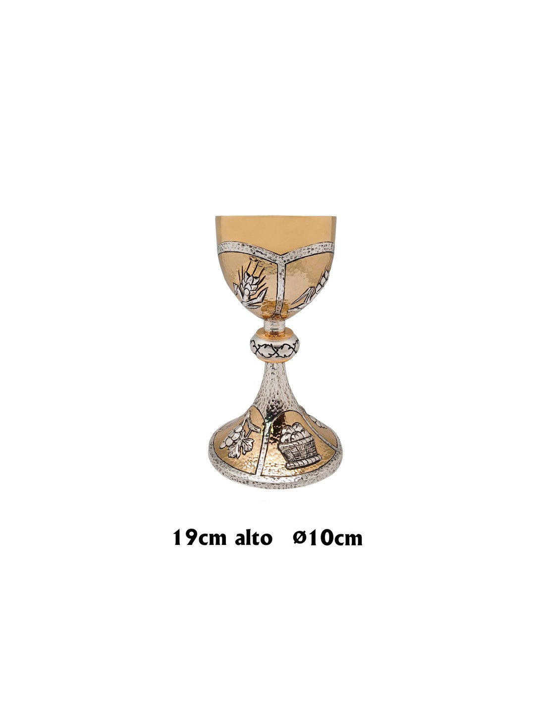 Caliz Bicolor Grabado Pie Peces Uvas Panes Nudo Dorado Grabado 810