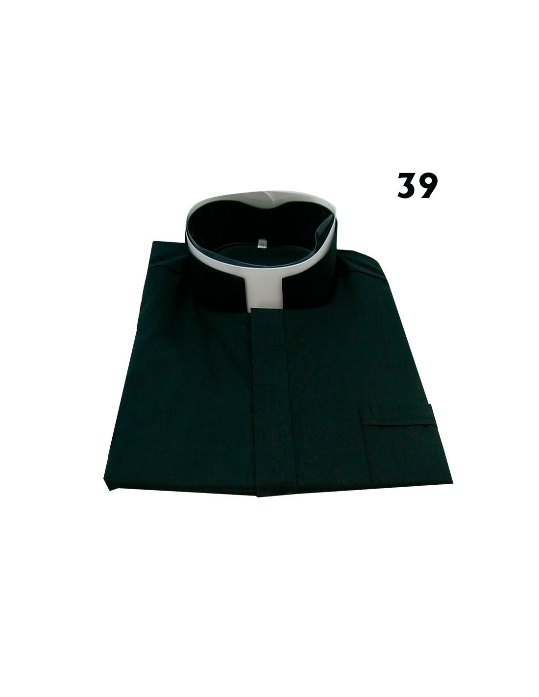 Camisa Sacerdote Negra Cuello Romano Ml Talla 39