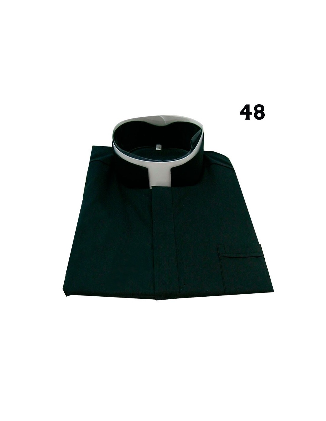 Camisa Sacerdote Negra Cuello Romano Ml Talla 48