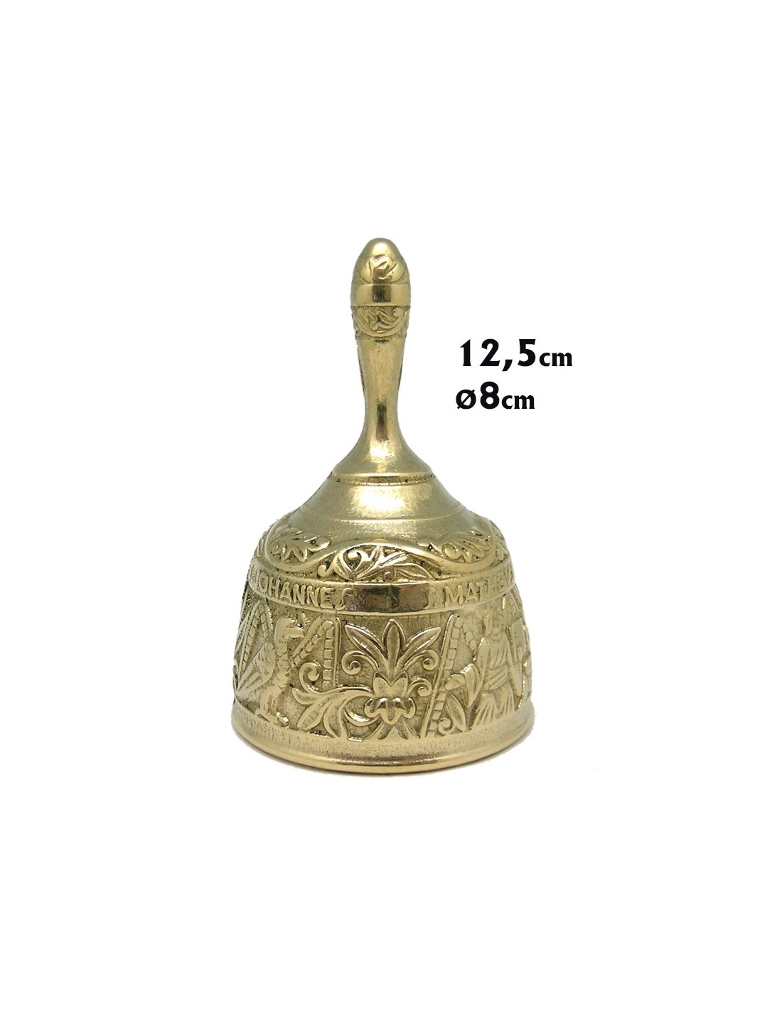 Campana Metal Dorada Evangelistas 8Cm Diametro Altura 12. 5Cm