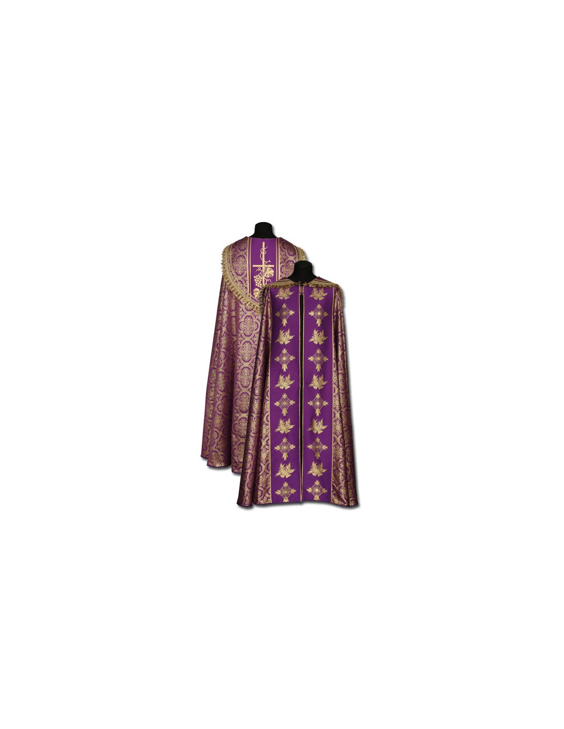 Capa Pluvial Morada Tipo Damasco Cruces Y Cruz Con Uvas Detras N444 Con Estola