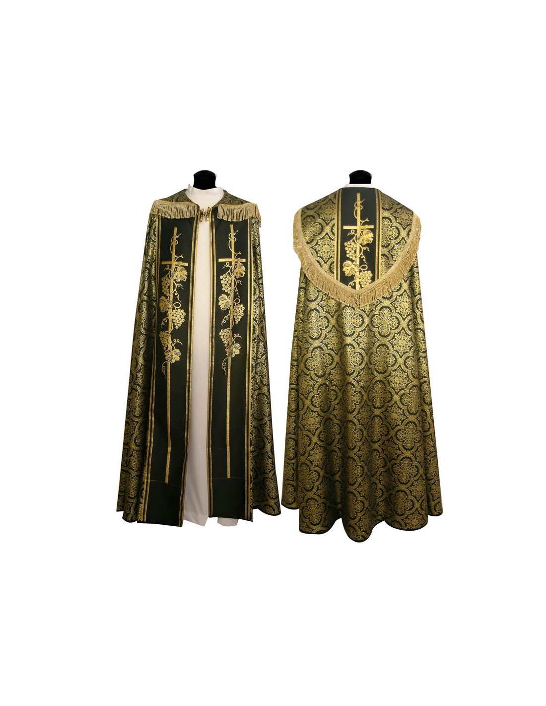 Capa Pluvial Negra Estampada Tipo Damasco Cruces Y Cruz Con Uvas Detras N444 Con Estola