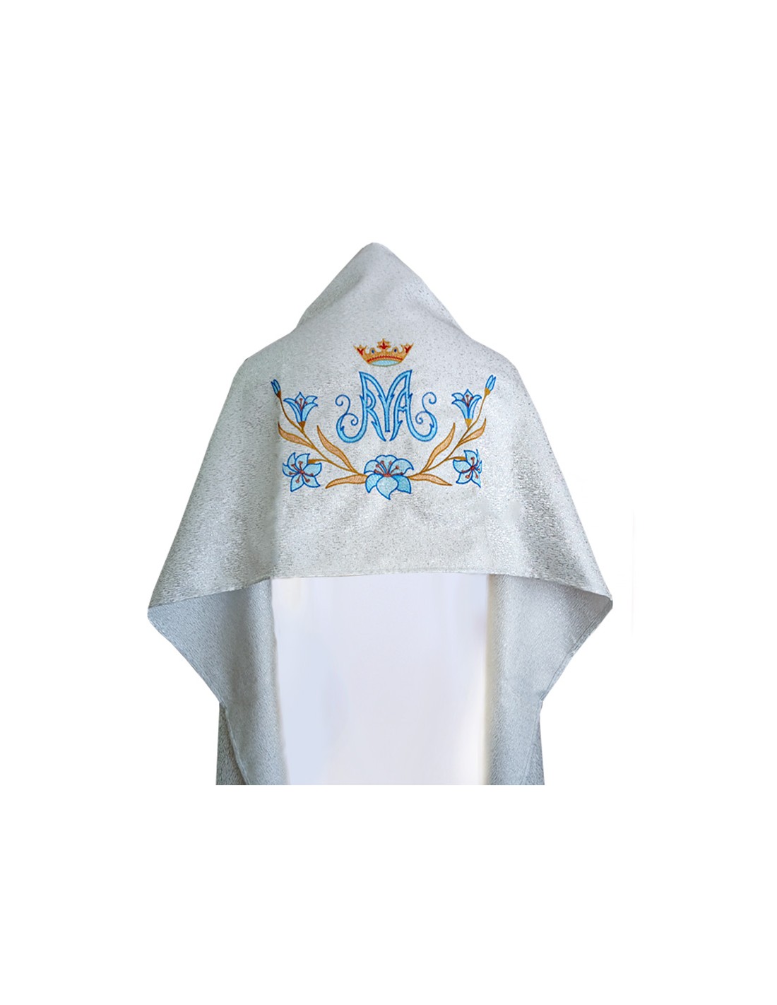 Paño De Hombros Mariano Tres Flores Bordado Azul Y Oro