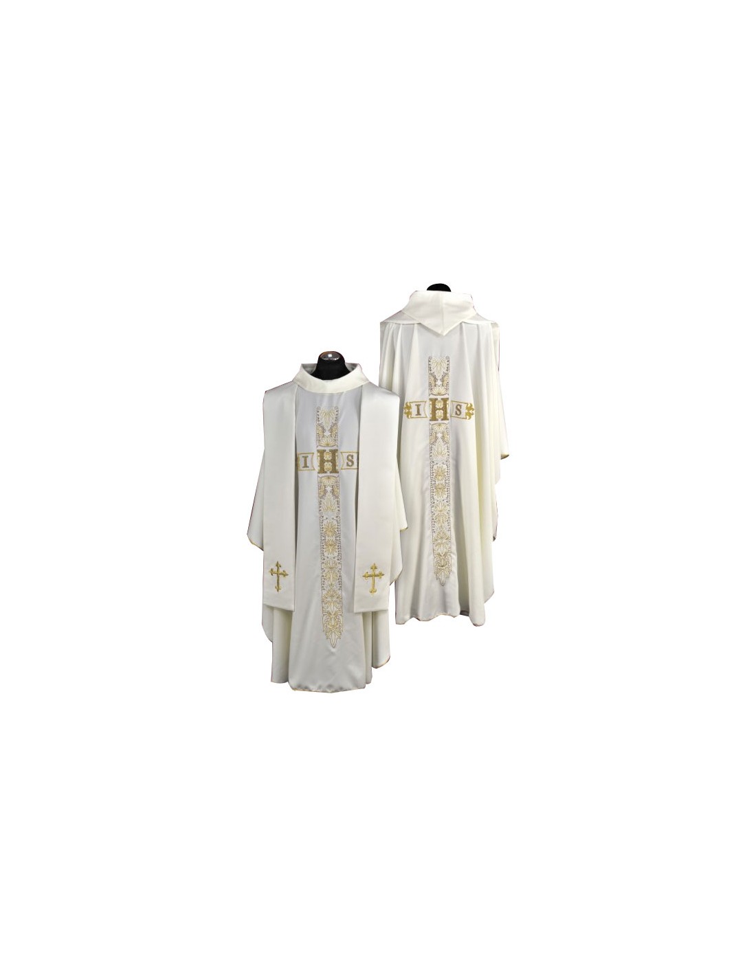 Casulla Bordada Cruz Larga Con Ihs Al Centro Crema Kor 051