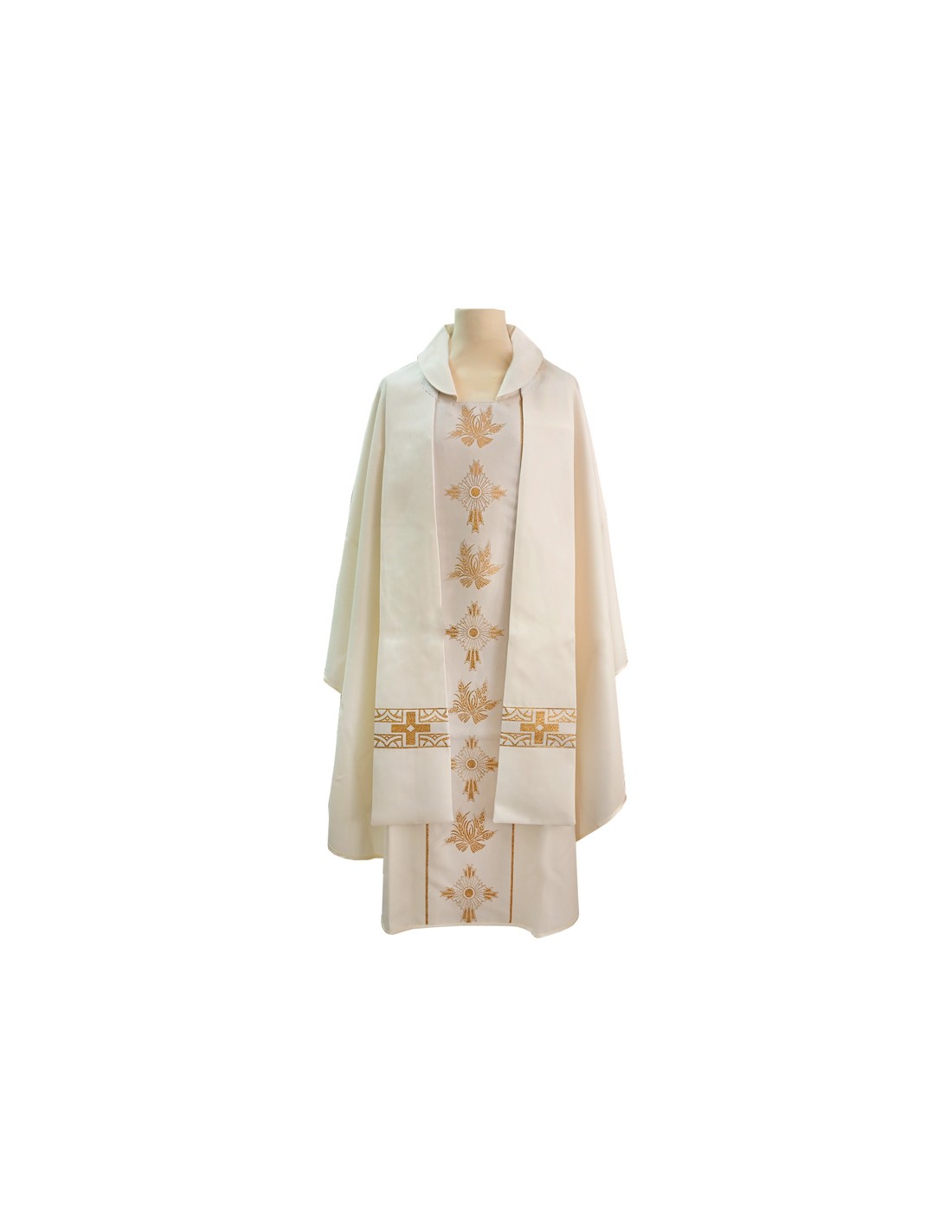 Casulla Estampada Con Galon Cruz Y Espigas Doradas N356