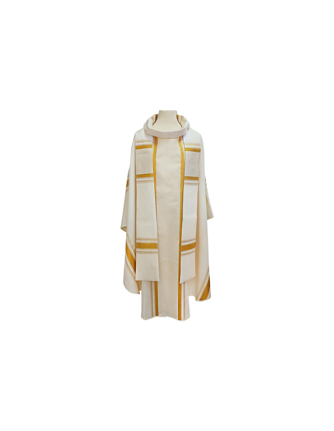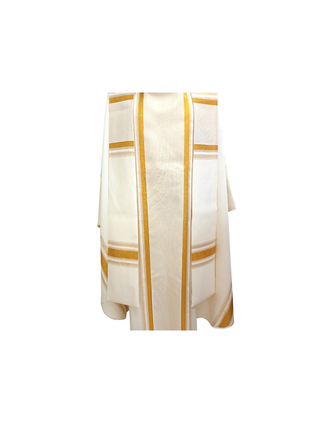 Casulla Estampada Tipo Damasco Rayado En Vertical N368 Blanca