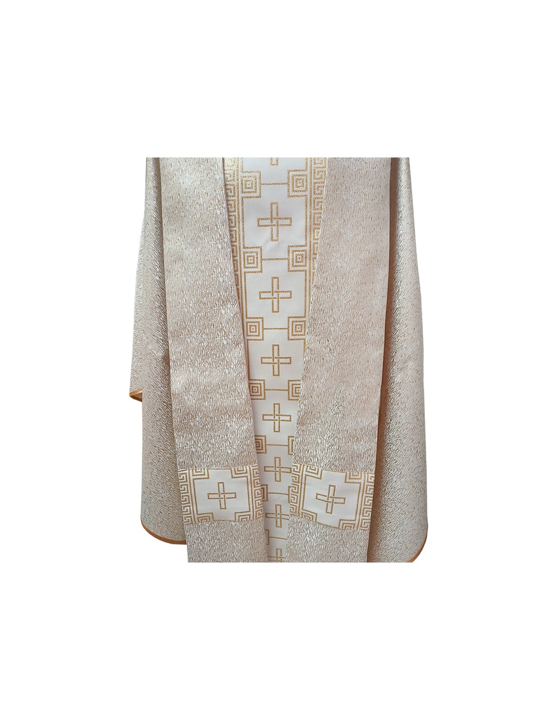 Casulla Estampada Tipo Damasco Con Galon Greca Romana N376 Blanca