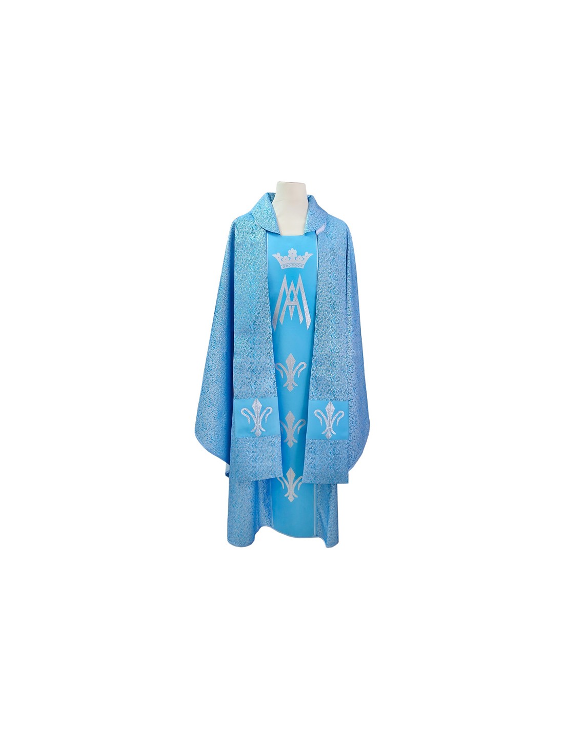 Casulla Azul Estampada Tipo Damasco Mariana Signo Mariano Con Lis N382