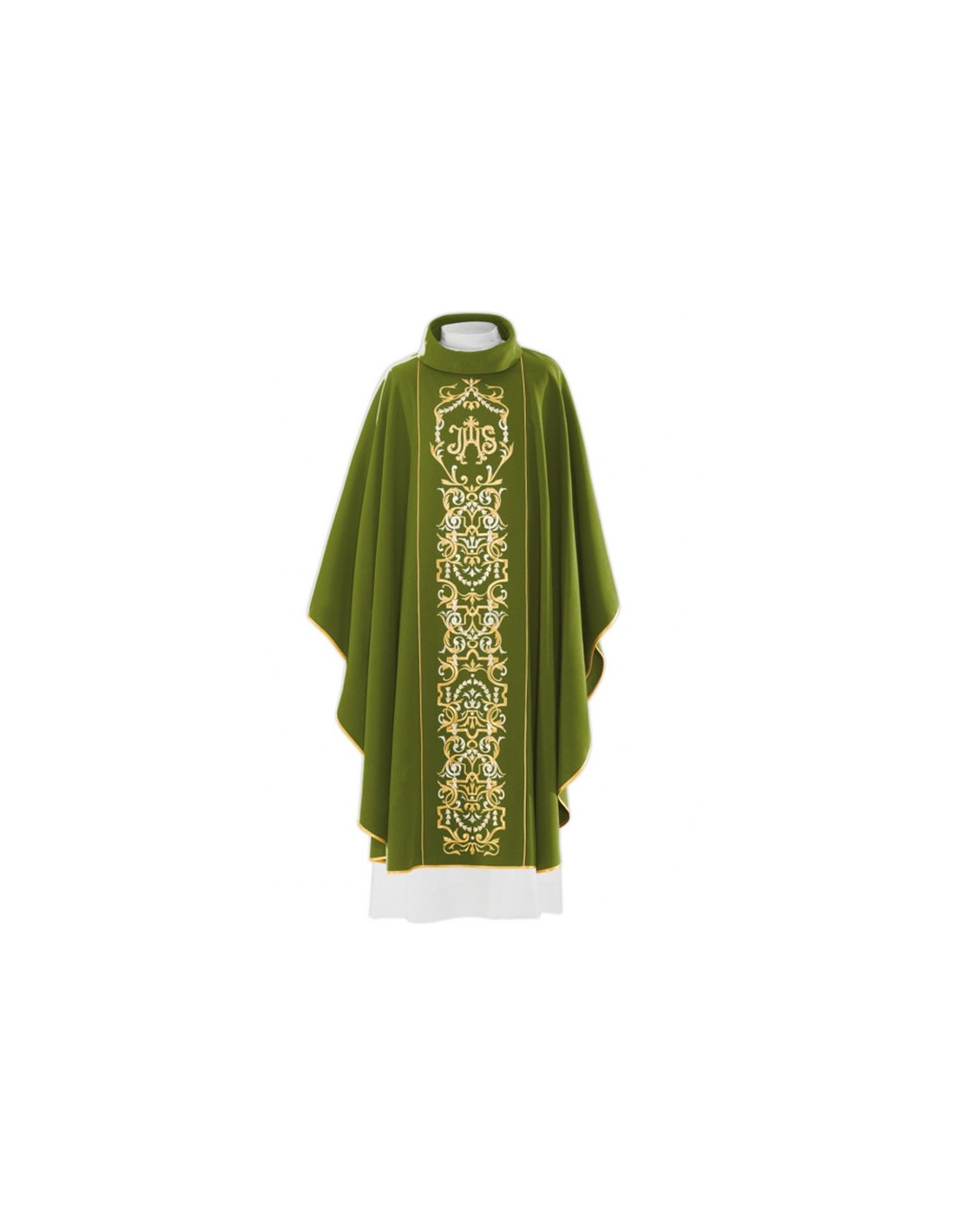 Casulla Bordada Jhs Con Greca Ancha Bordada Oscuro Y Dorado Verde Kor/029