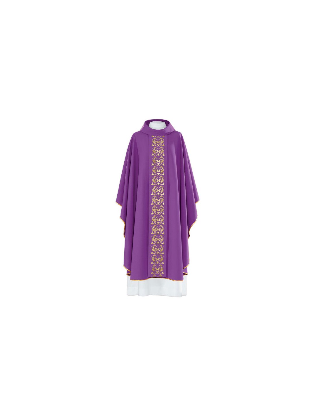Casulla Bordada Con Galon Uvas En Rectangulo Morada Kor 065