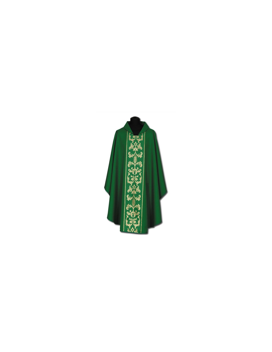 Casulla Estampada Con Galon Espiga Tipo Lis Dorada N360 Verde