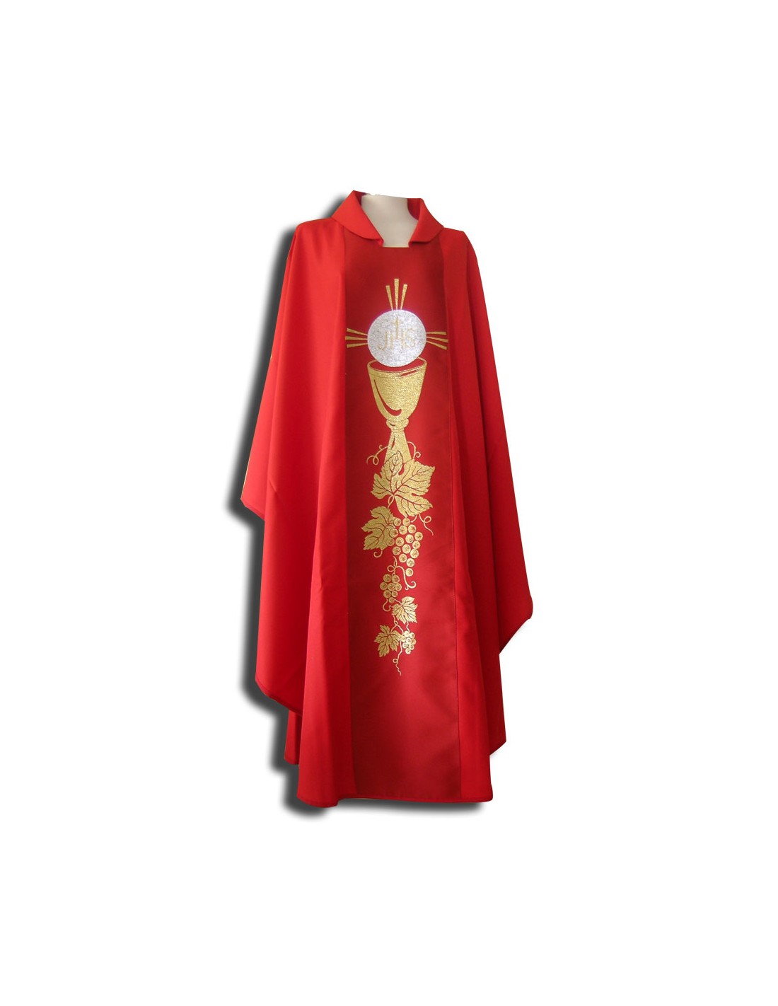 Casulla Estampada Con Galon Caliz Grande Con Forma Y Racimo Uvas N366 Roja