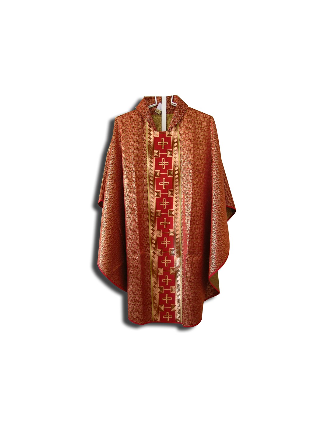 Casulla Estampada Tipo Damasco Con Galon Greca Romana N376 Roja