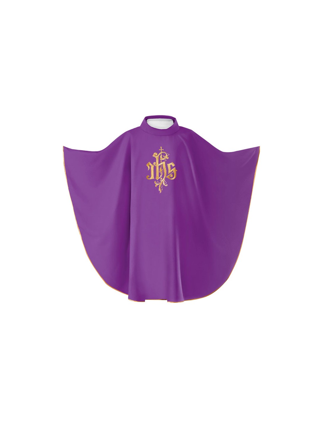 Casulla Bordada Jhs Con Hojas Y Cruz Pequeña Arriba Morada Kor/032
