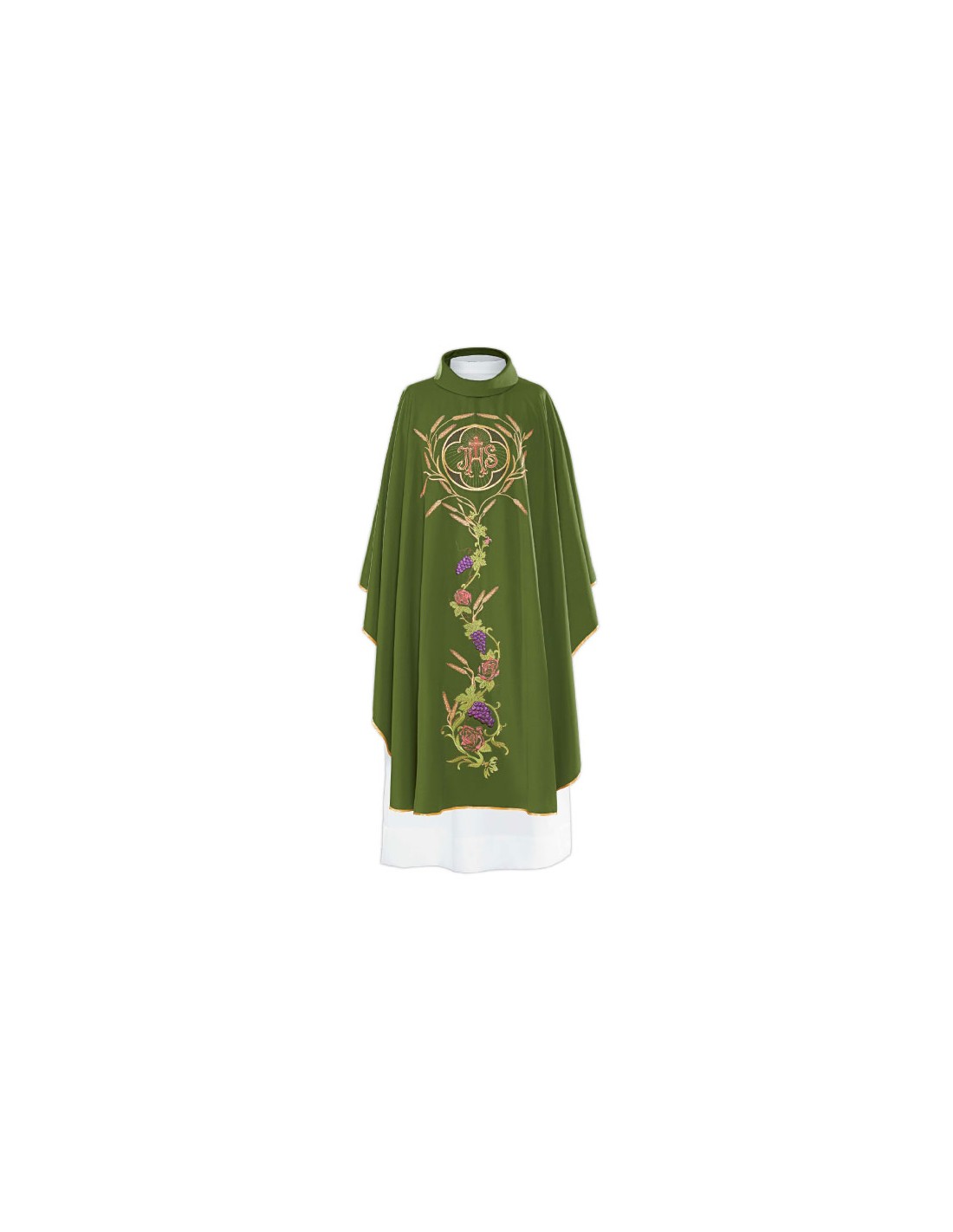 Casulla Bordada Jhs En Roseton Kor/006 Flores Y Uvas Verde