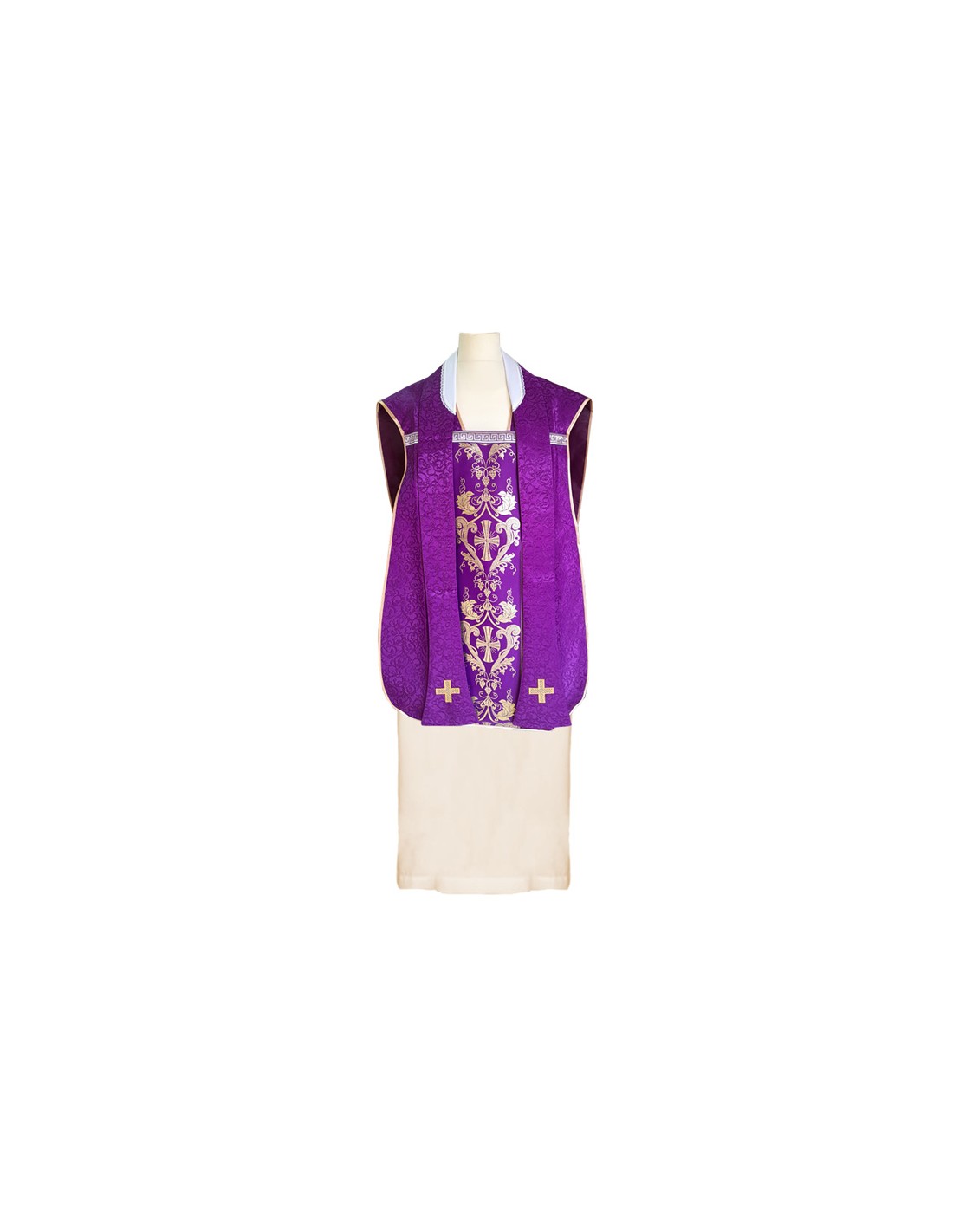 Casulla Tipo Guitarra Estampada Cruz Dentro Ornacina Tela Tipo Damasco Morada