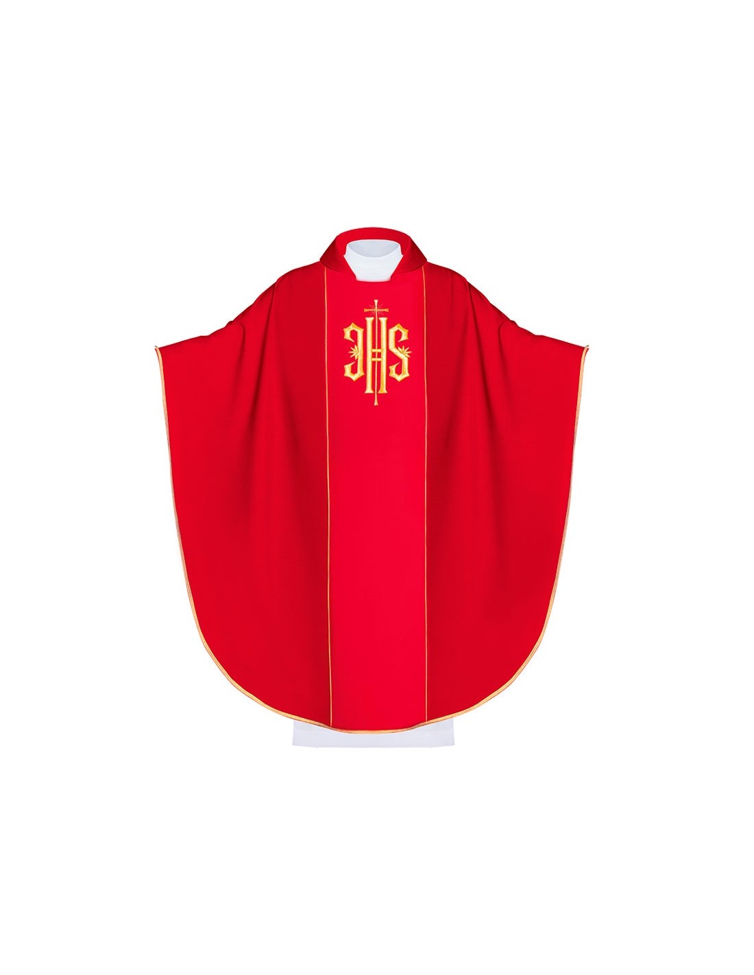 Casulla Bordada Jhs Y Cruz Larga En Medio Con Remate Arriba Tejido Pol Roja Kor/010
