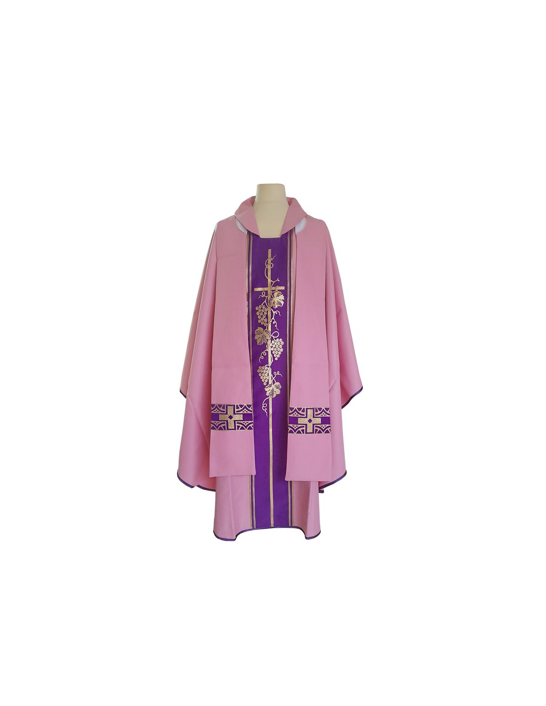 Casulla Estampada Con Galon Cruz Larga Con Racimos N354 Rosa
