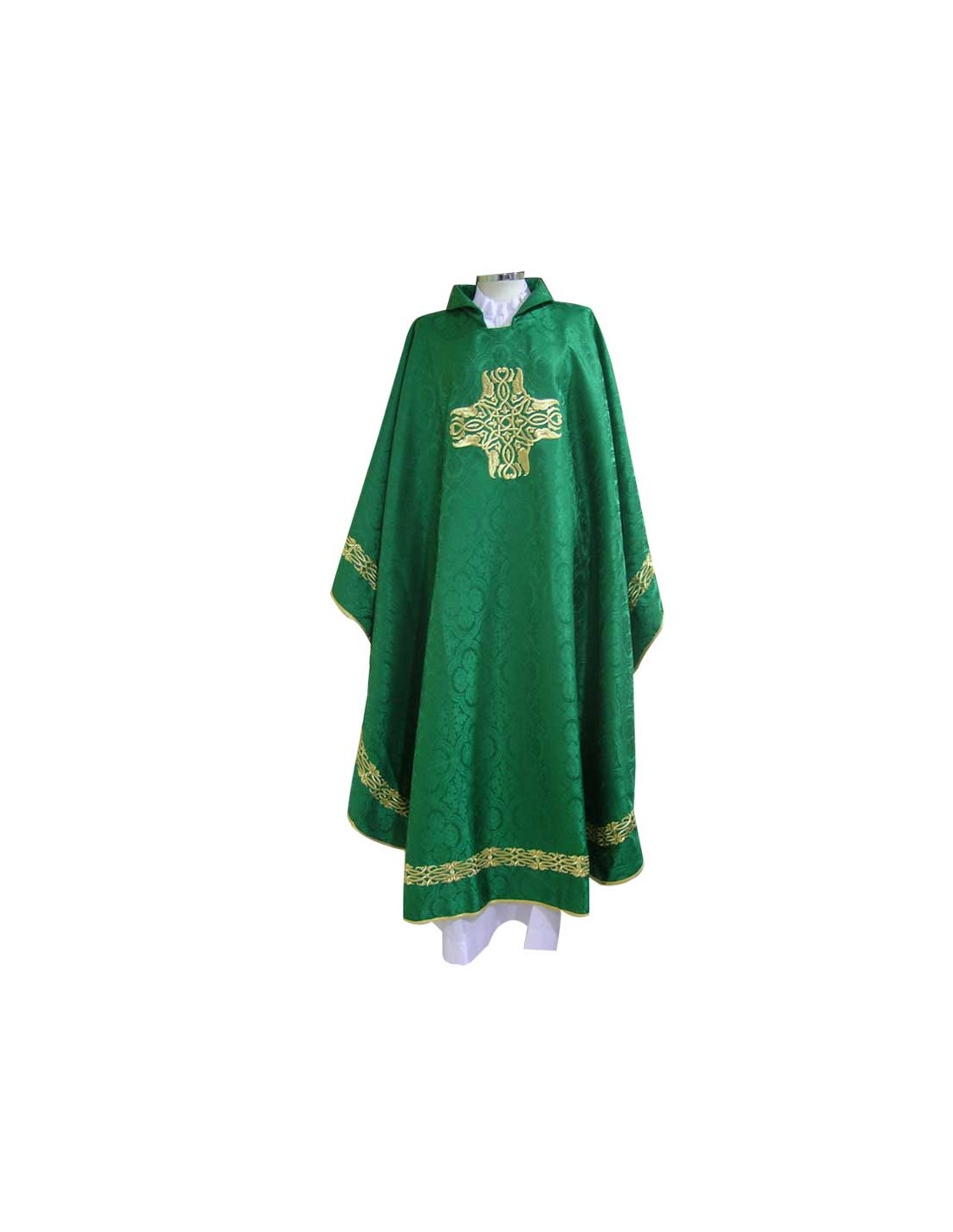 Casulla Bordada Cruz Cuadrada Tela Adamascada Y Bordado Contorno Exterior Verde