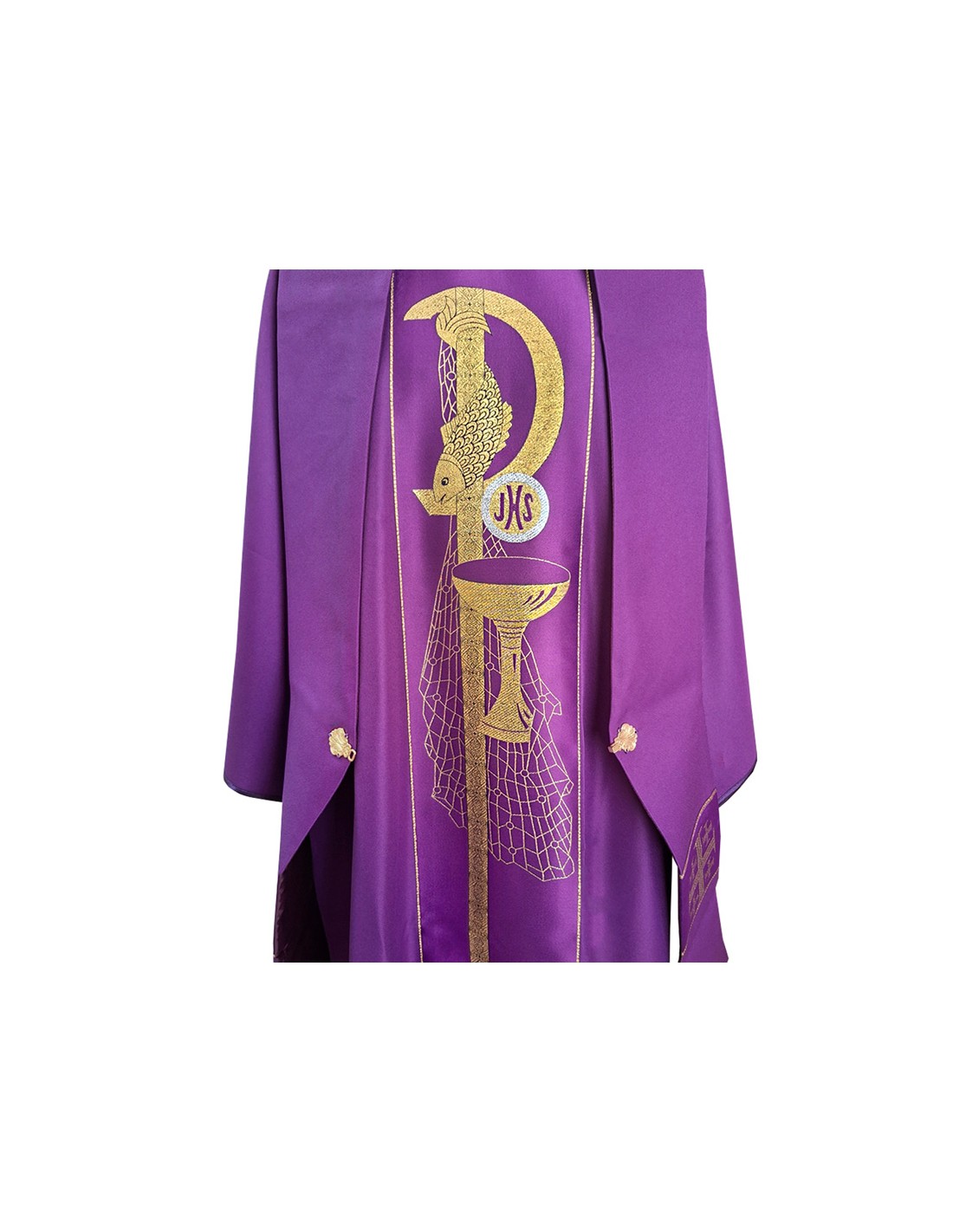 Dalmatica Morada Estampada Con Galon Pax Caliz Forma Y Una Red De Fondo