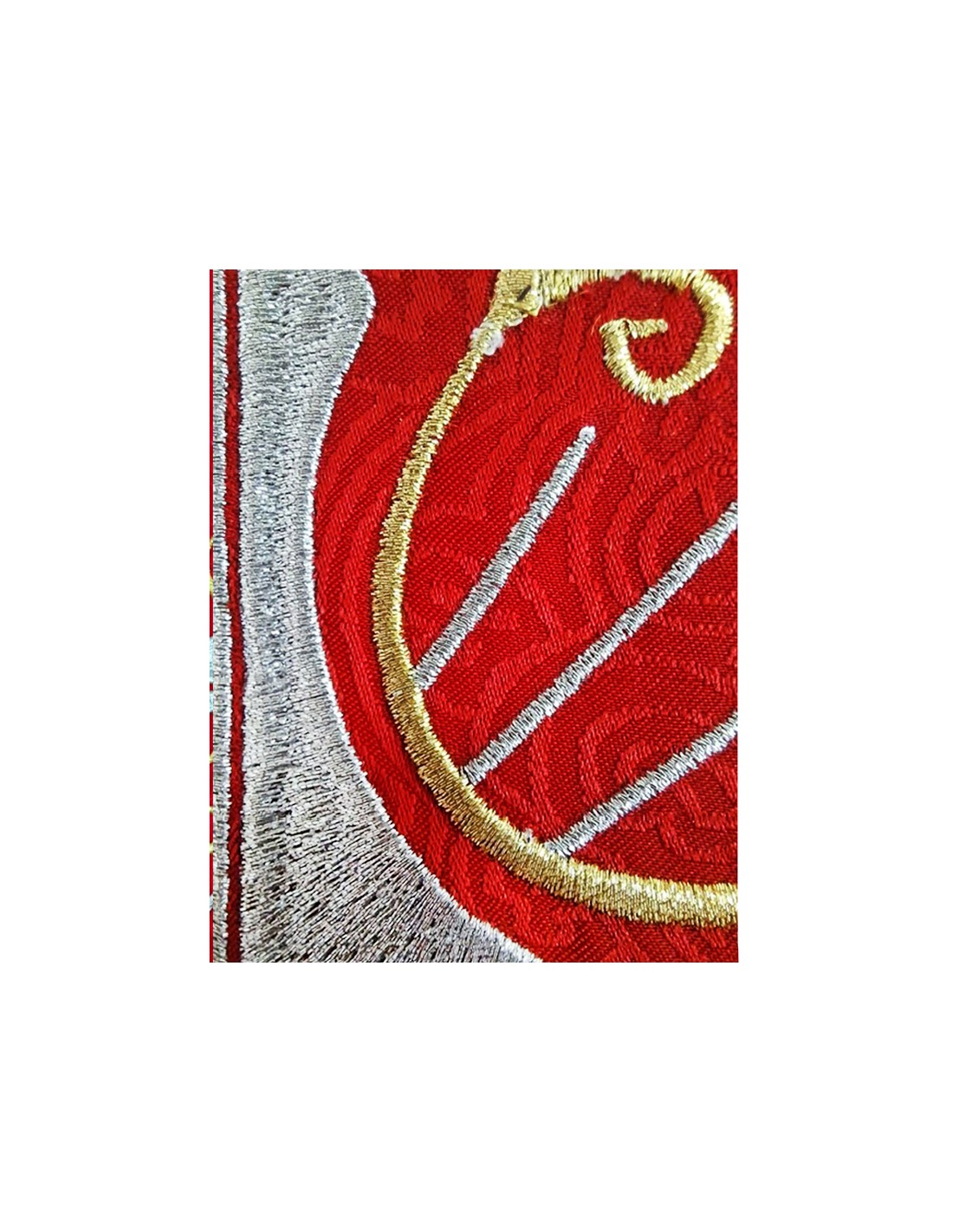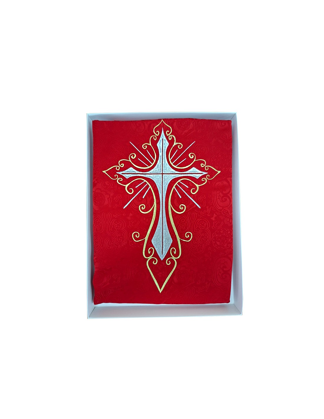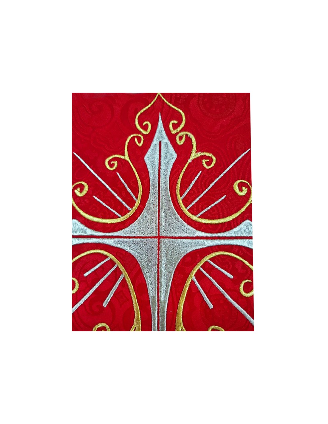 Casulla Adamascada Bordada Cruz Grande Roja Con Dorada Alrededor