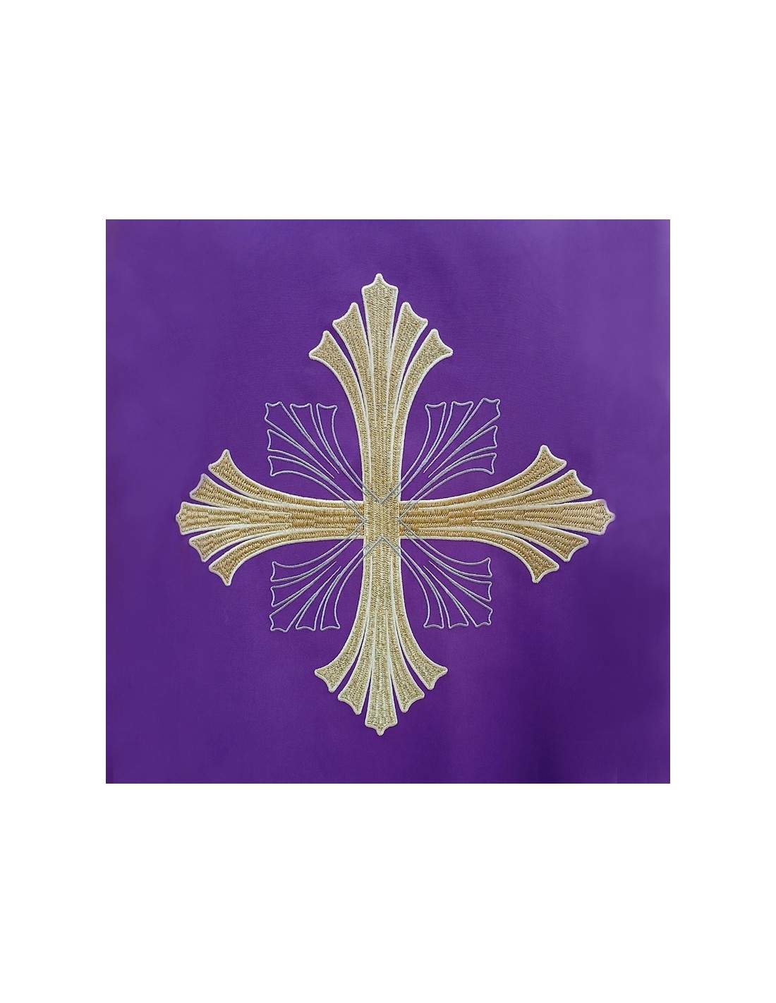 Casulla Bordada Cruz Grande Con Rayado En Puntas Morada