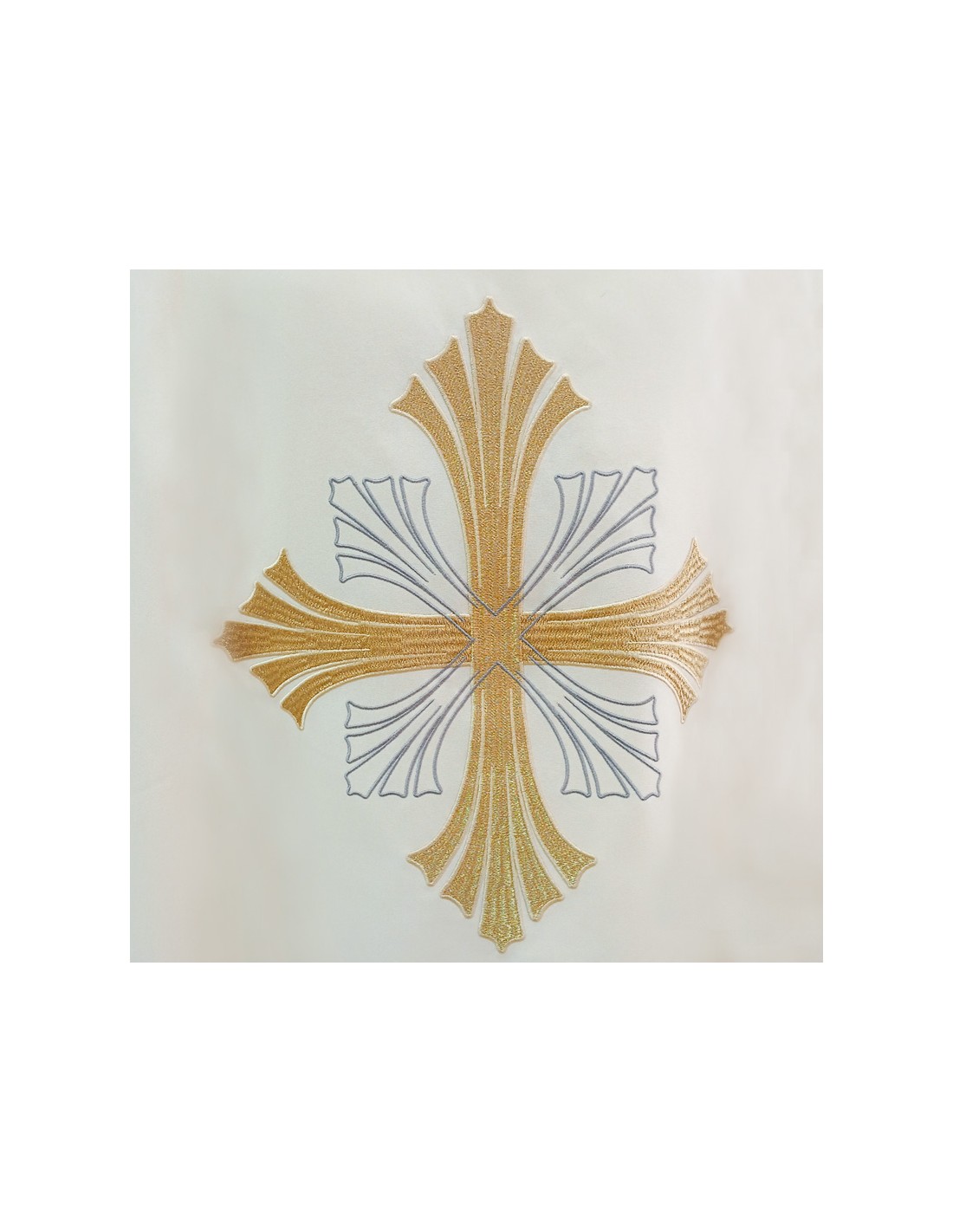 Casulla Bordada Cruz Grande Con Rayado En Puntas Beig