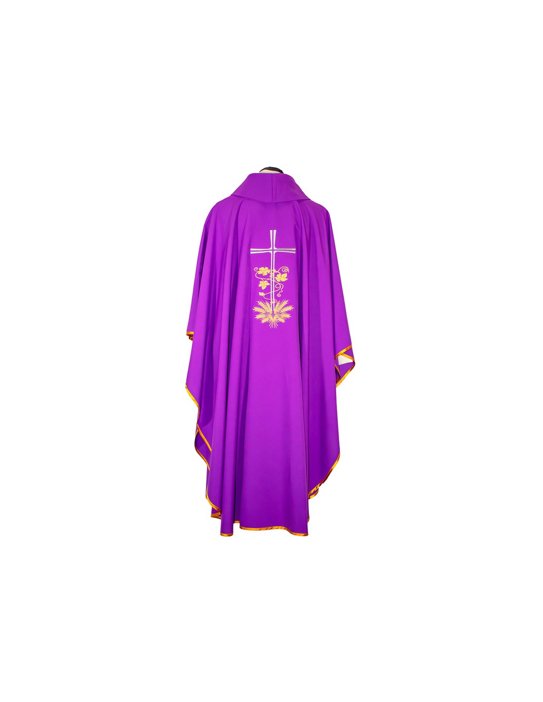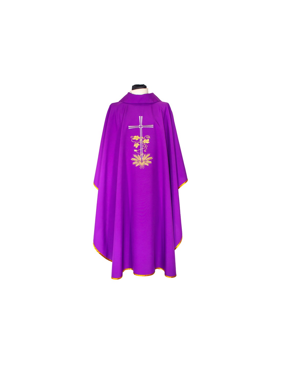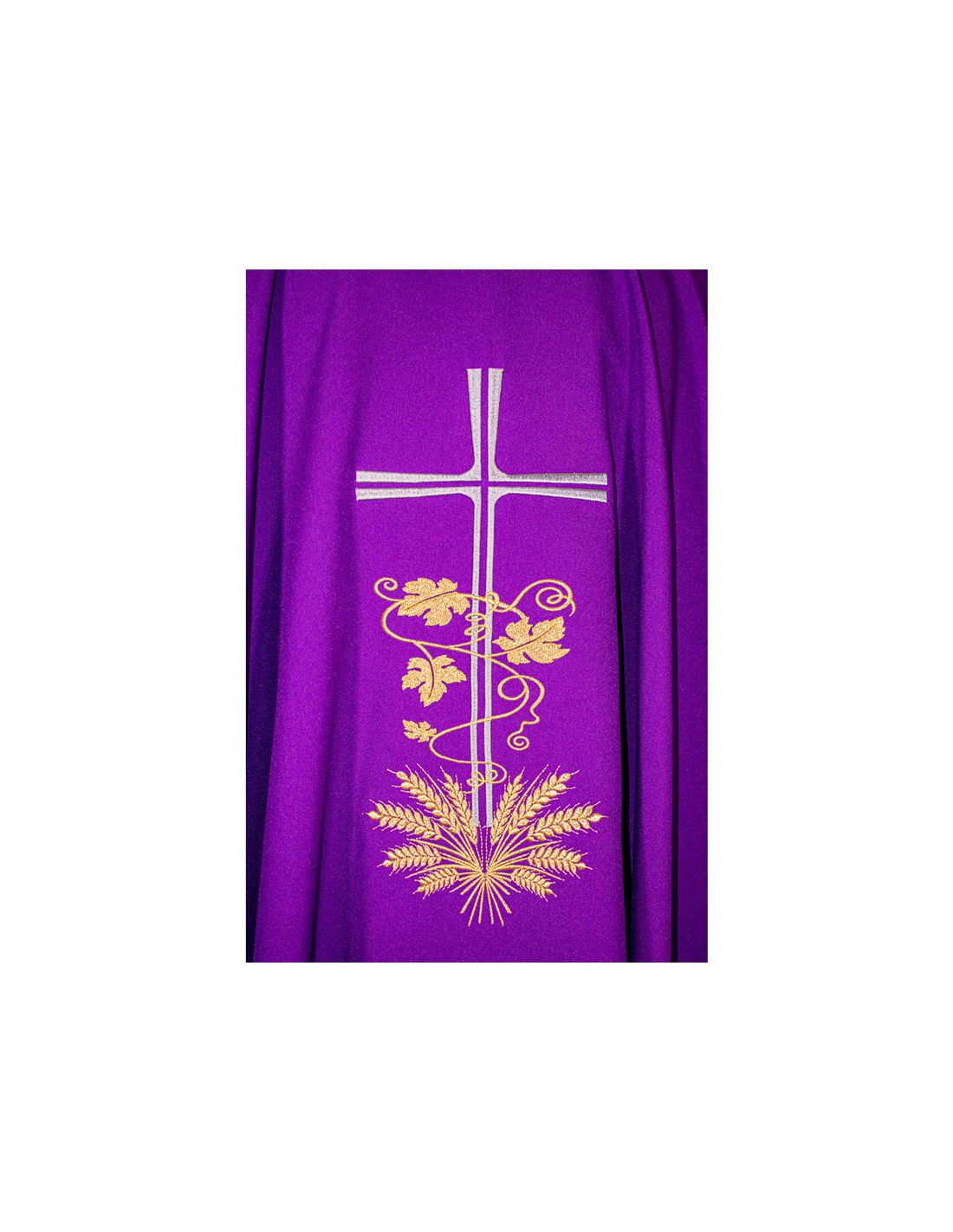 Casulla Cruz Larga Con Hojas De Parra Y Espigas En Base Morada