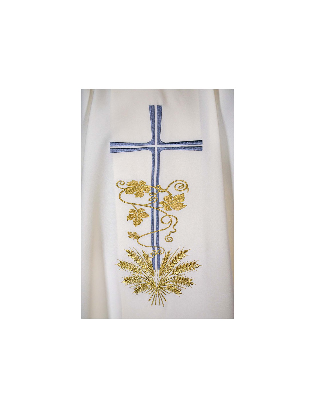 Casulla Cruz Larga Con Hojas De Parra Y Espigas En Base Beig