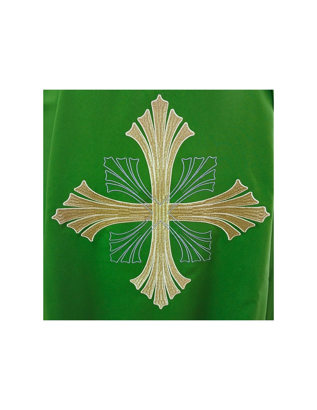 Casulla Bordada Cruz Grande Con Rayado En Puntas Verde