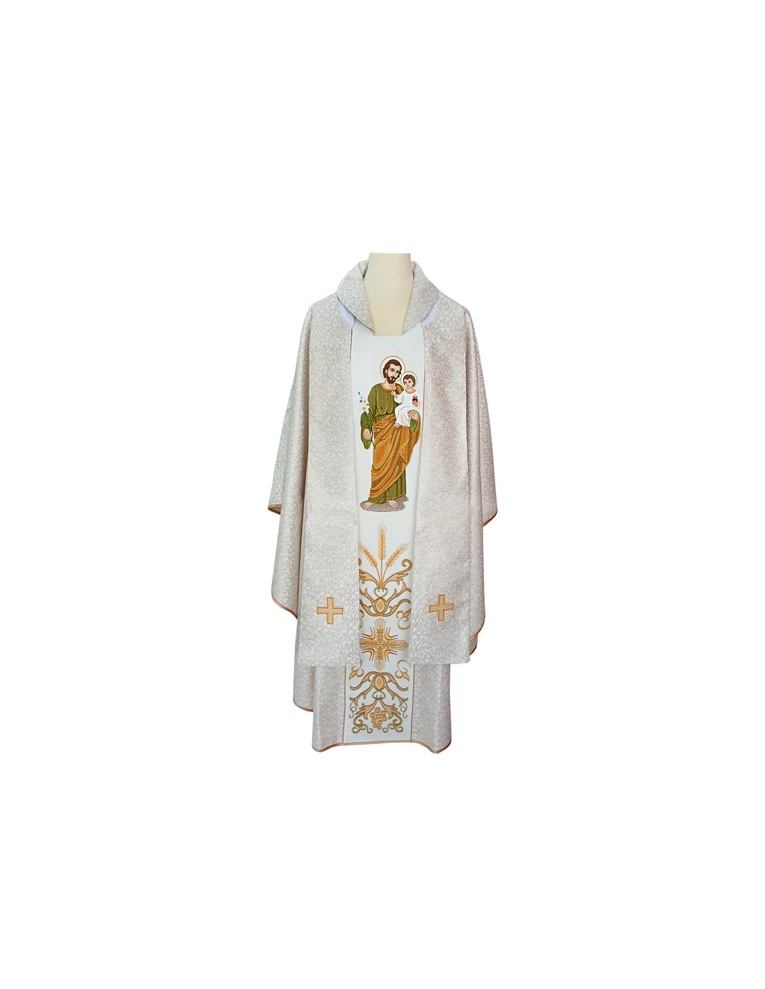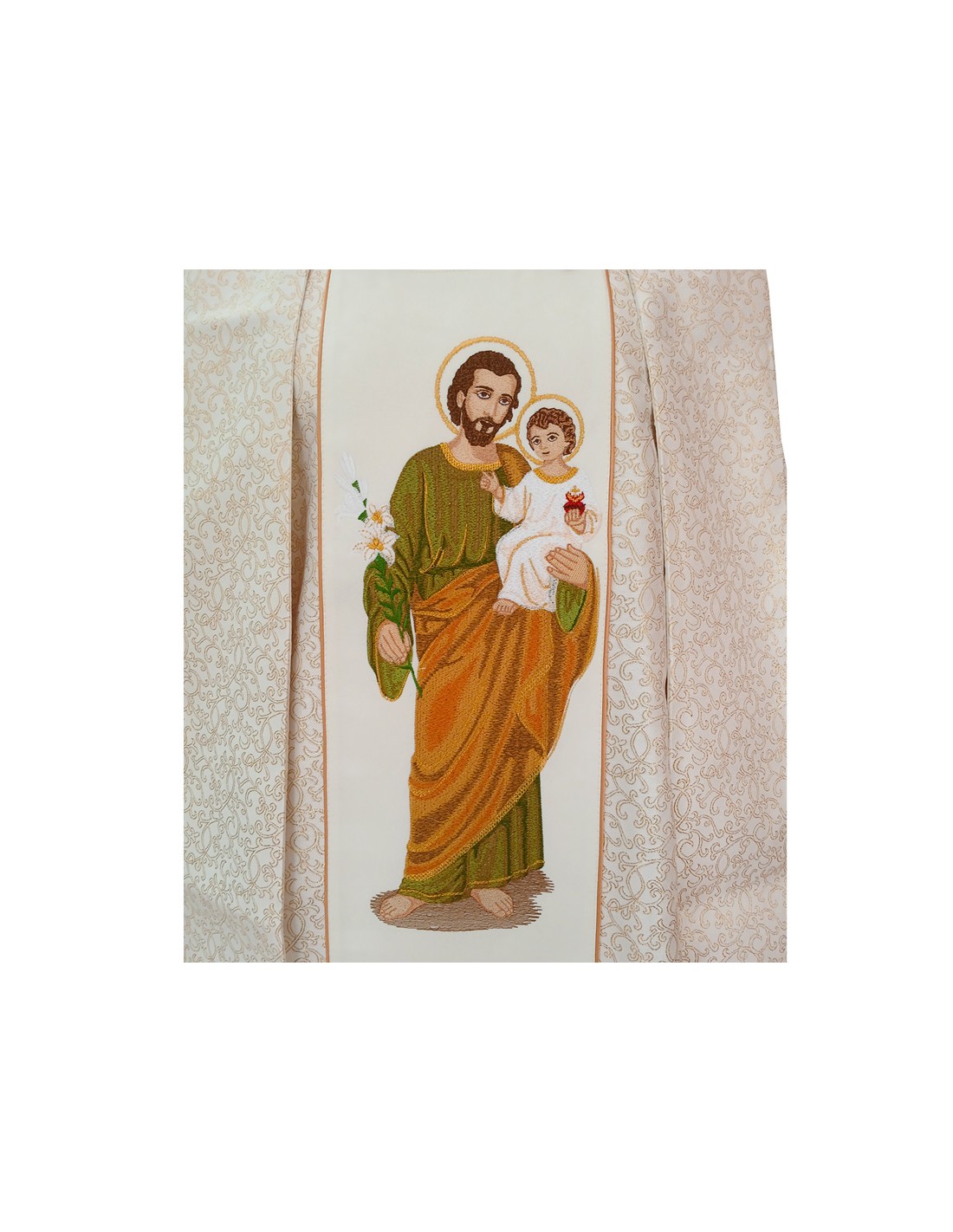 Casulla Bordaba Adamascada San Jose Con Niño En Brazos Figura Completa
