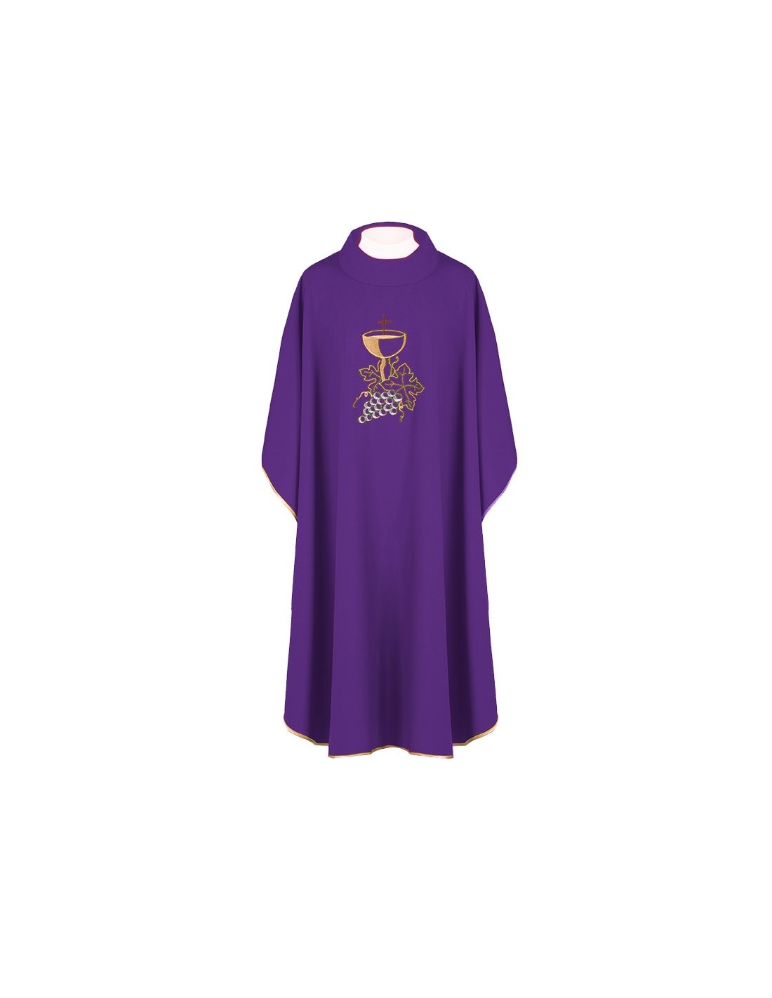 Casulla Bordada Caliz Con Hojas De Parra Kor/208 Morada Cuello Redondo