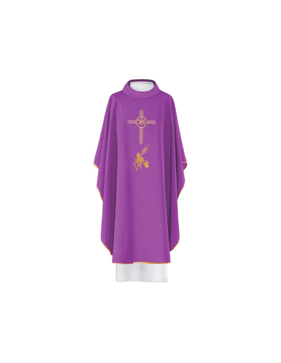 Casulla Bordada Jhs Dentro De Cruz Barrada Kor/003 Con Espiga Debajo Morada Cuello Redondo