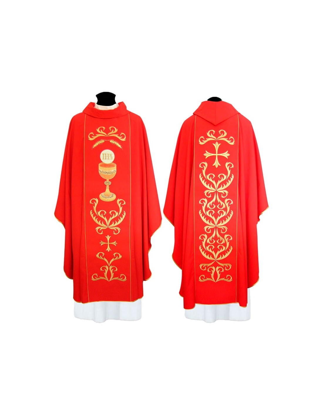 Casulla Bordada Caliz Grande Con Forma Jhs Con Ornacina Roja Kor/055 Cuello Redondo Fin