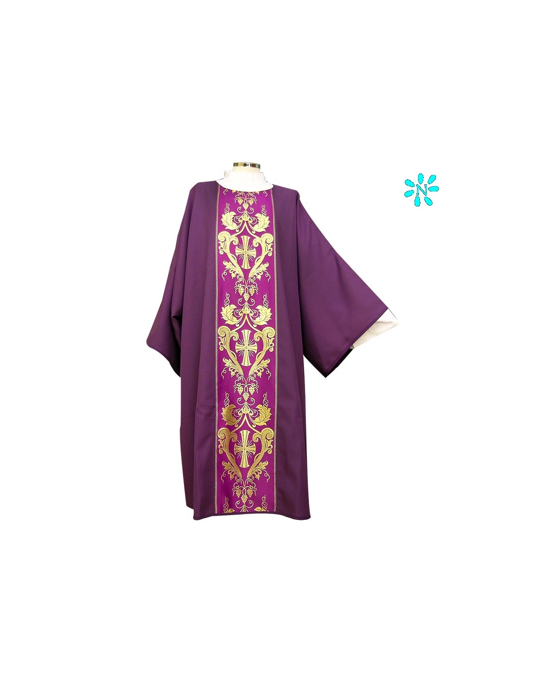 Dalmatica Estampada Con Galon Cruces Largas Dentro De Ornacinas Morada