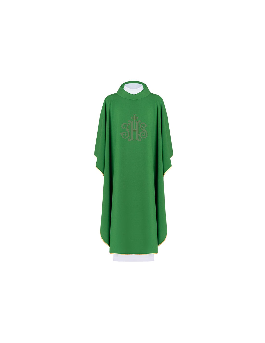 Casulla Bordada Jhs Con Cruz Superior Kor/210 Verde Cuello Cerrado Fin