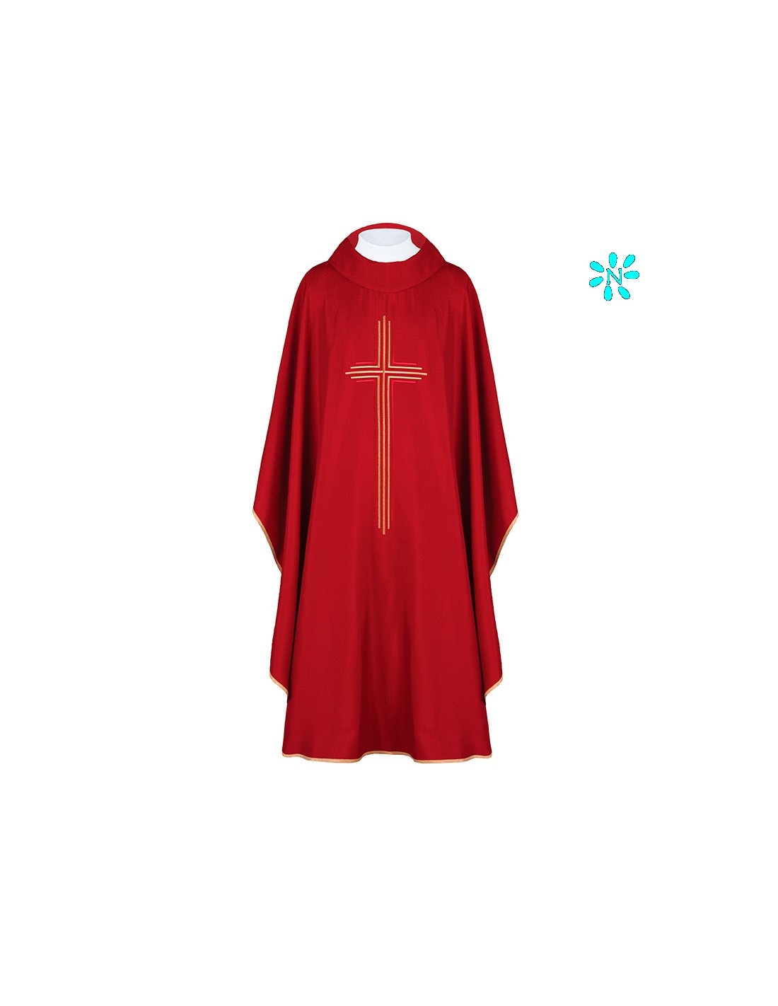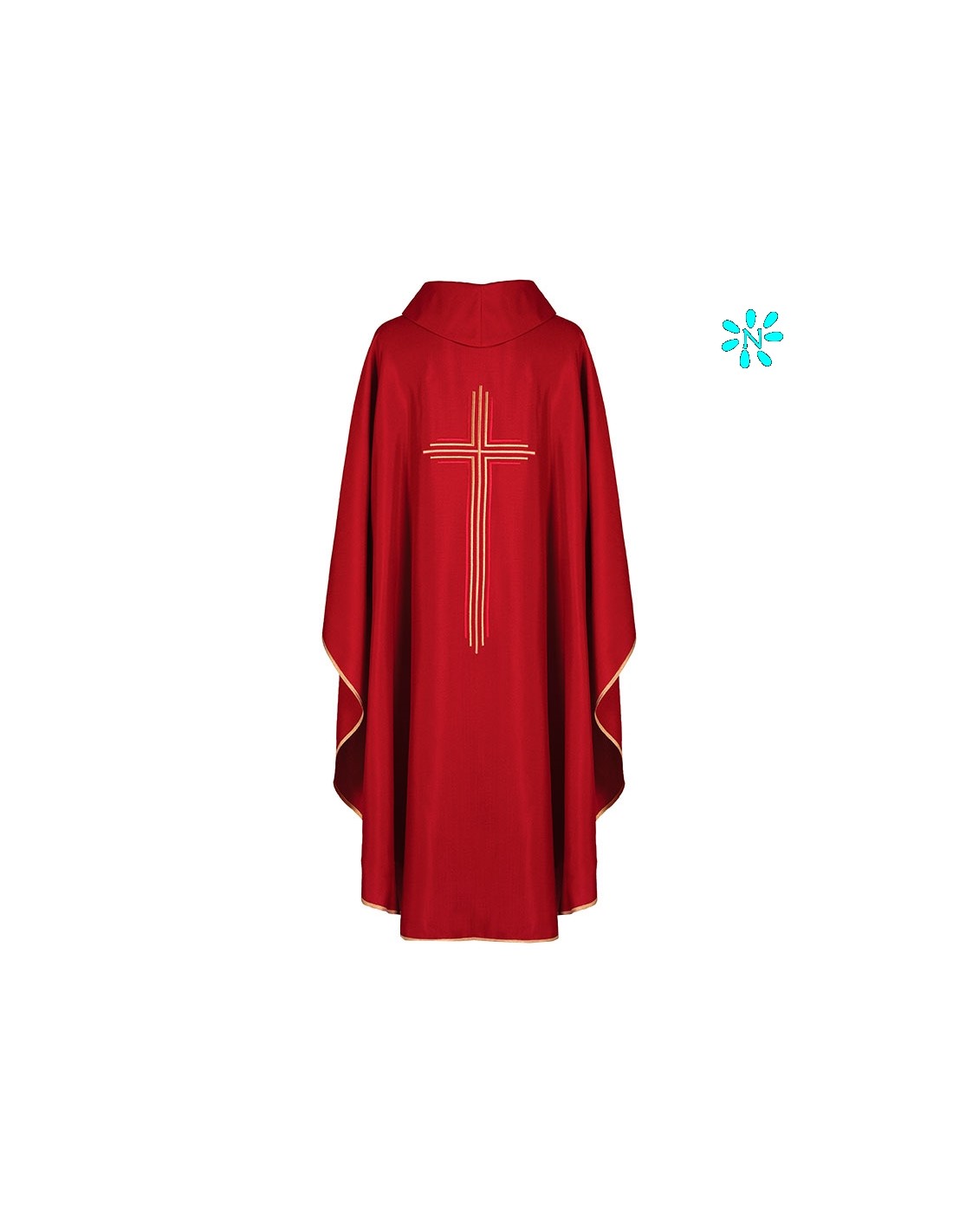 Casulla Estilo Arpillera Cruz Central Con Ribete Cuello Redondo Kor/220 Rojo