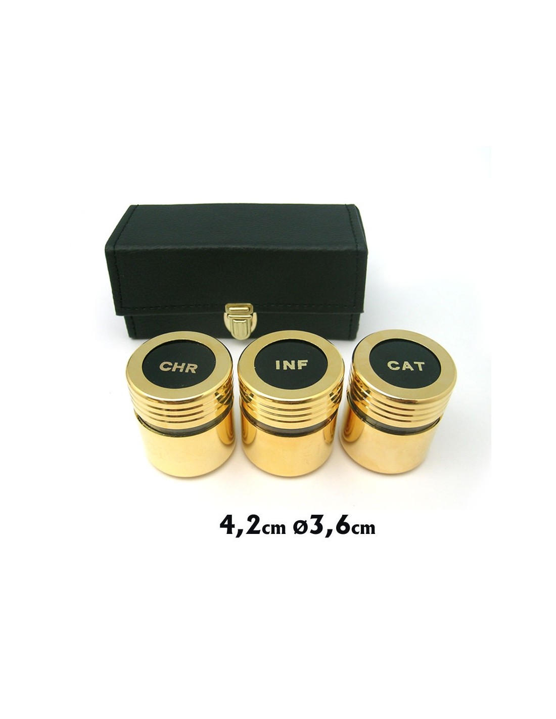 Crismera 3 Vasos Metal Dorado Y Cristal Con Estuche Rectangular