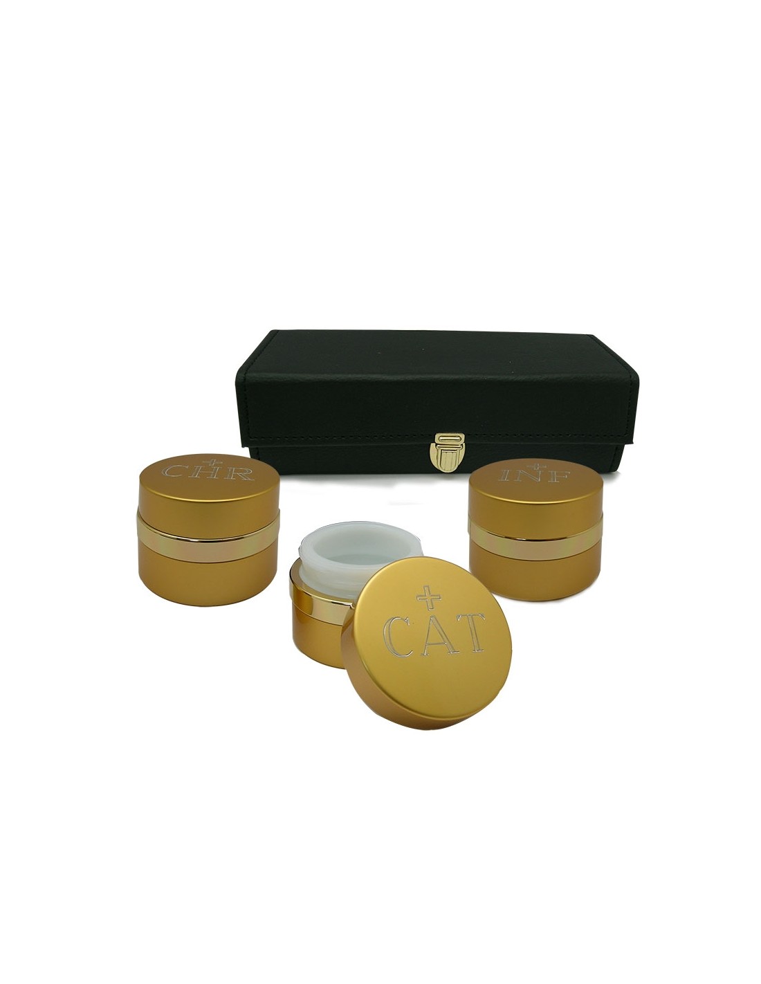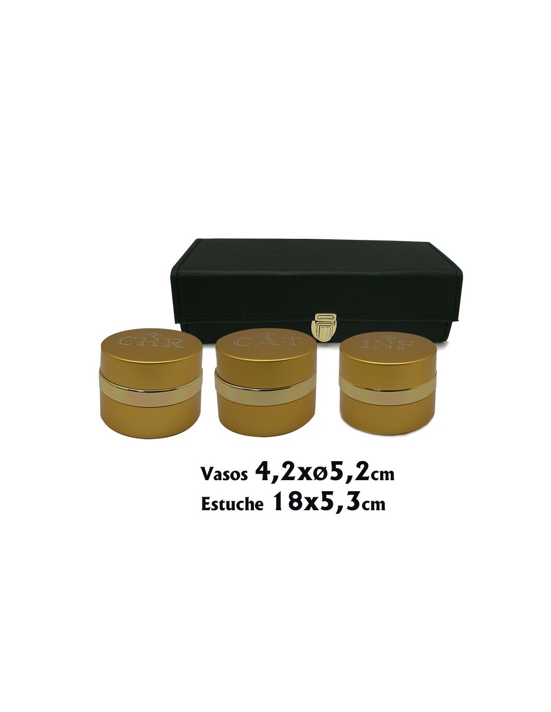 Crismera 3 Vasos Aluminio Dorado Y Cristal Ceramico Interno Estuche Rectangular
