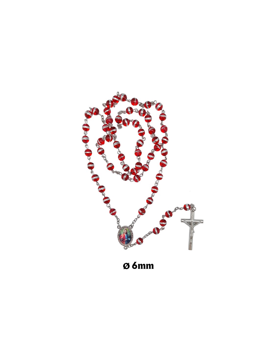 Rosario Cristal Liso 6Mm Rojo Con...