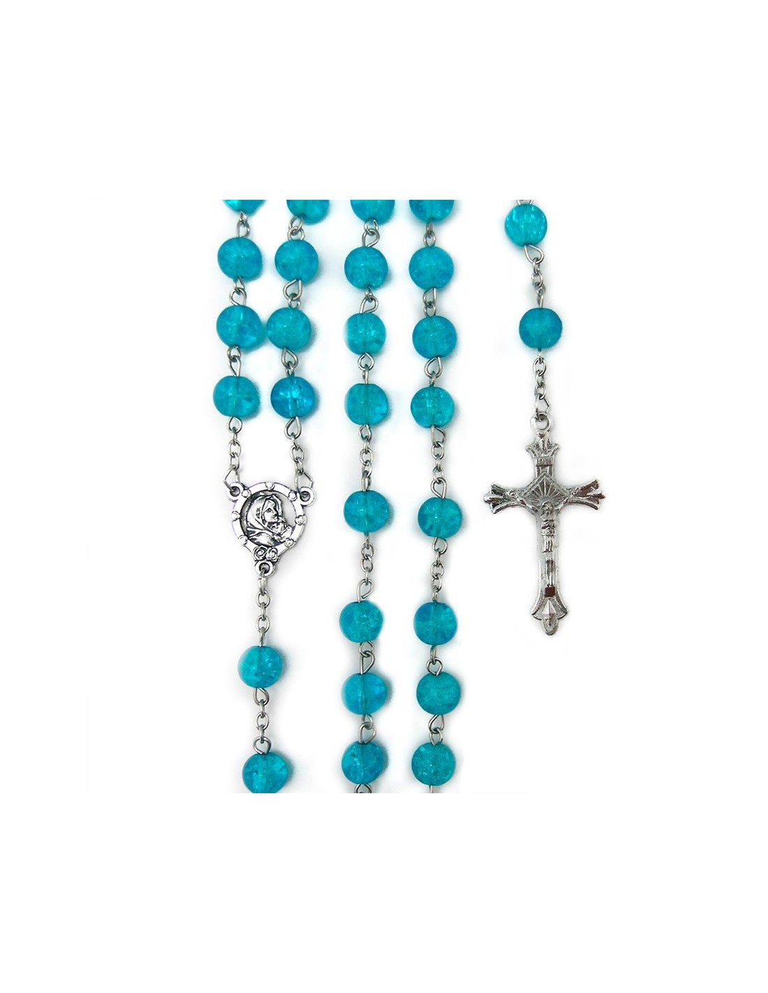 Rosario Cristal Liso 8Mm Azul Cuarteado