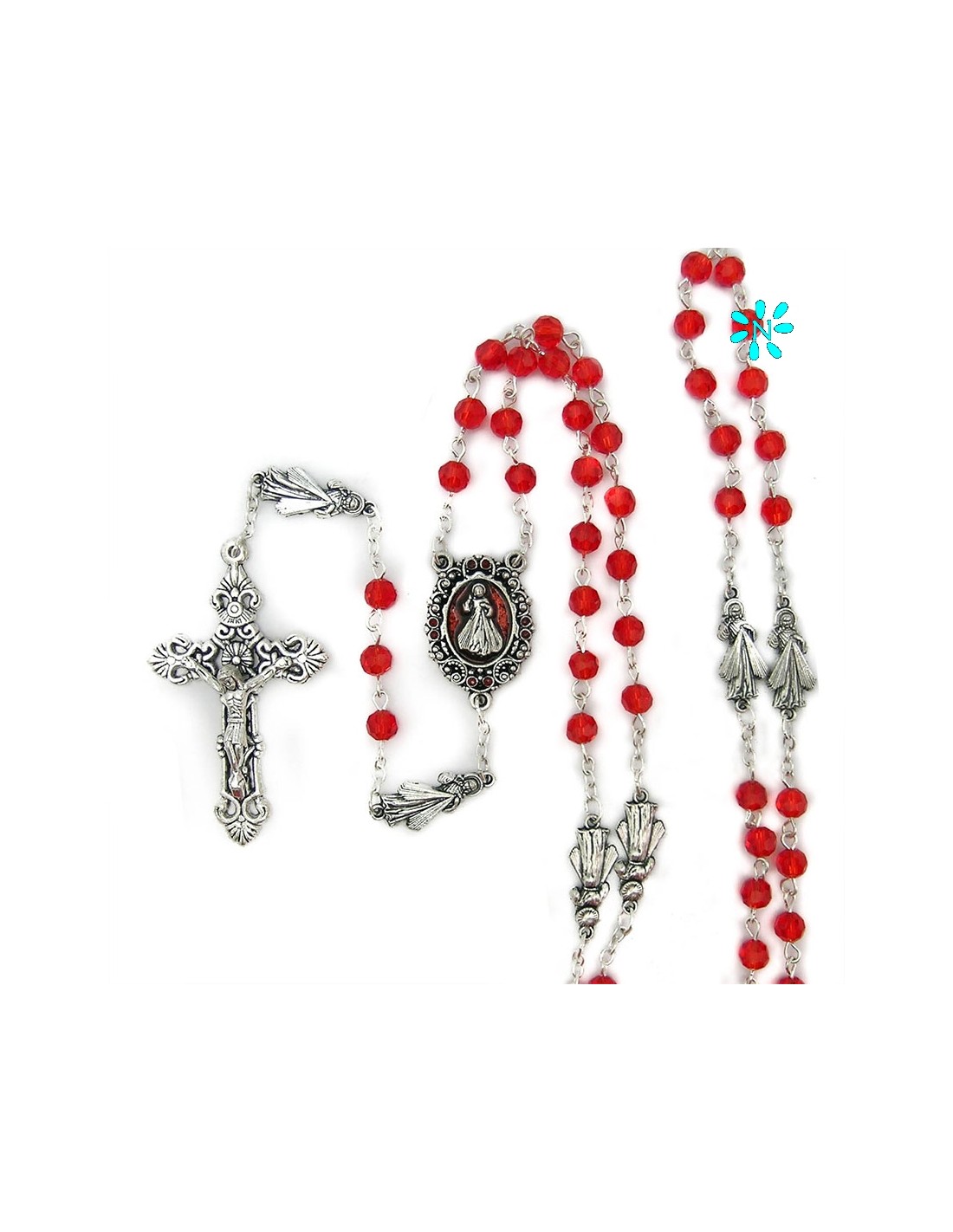 Rosario Cristal Tallado Rojo 6Mm Divina Misericordia En Paters Y Maria Esmaltada